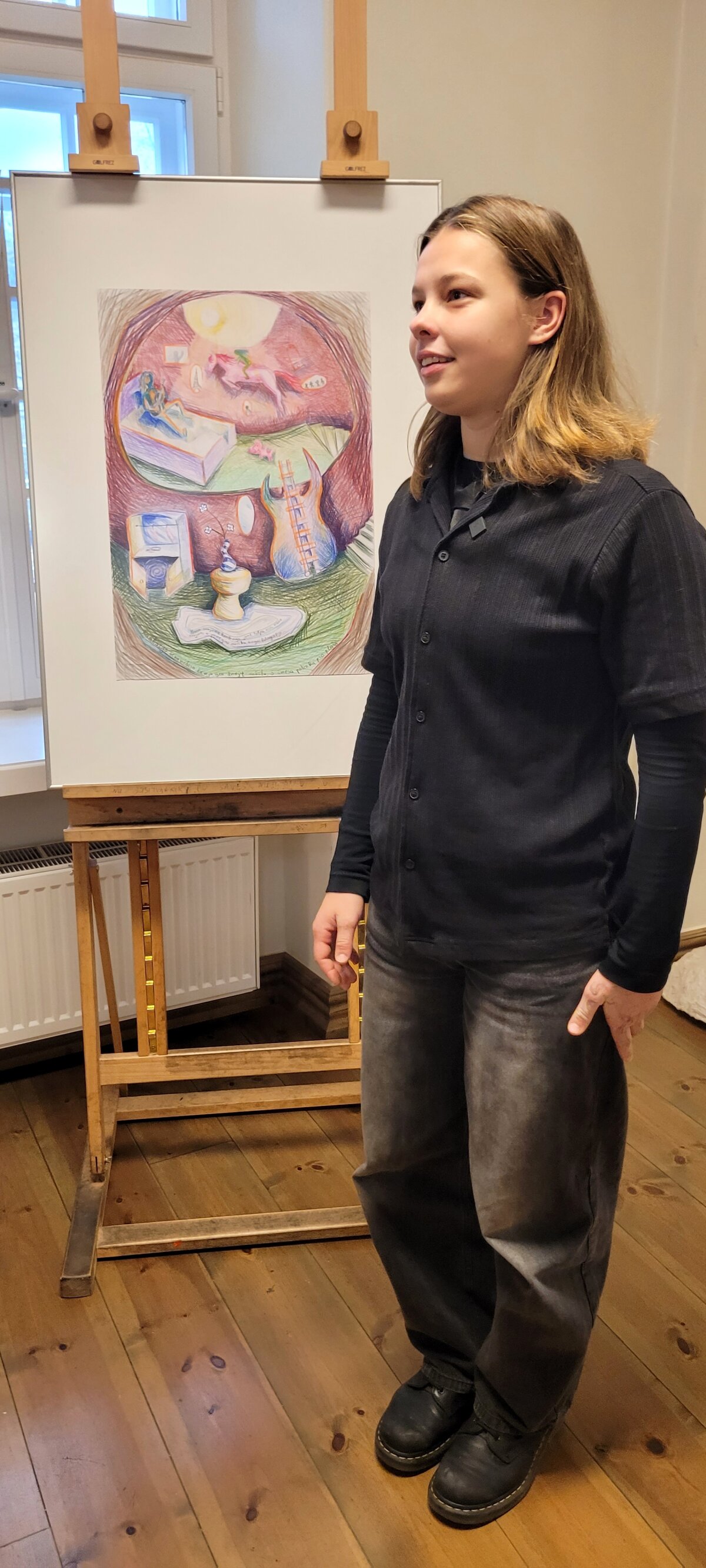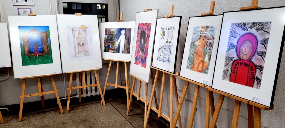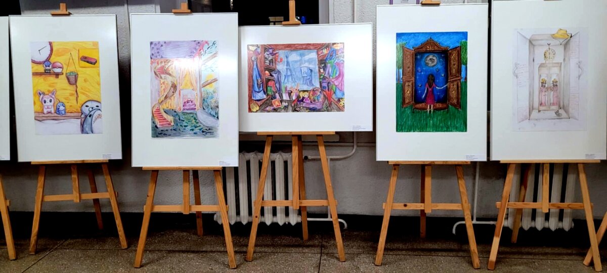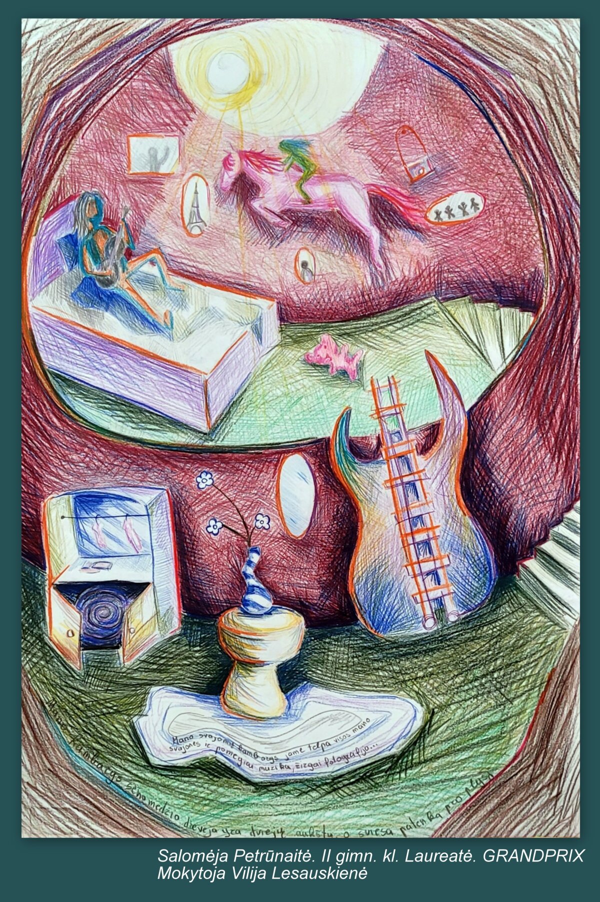 Na, o ketvirtąjį kartą jau kauniečiai atvyko pas mus – atvežė ir išeksponavo pirmojo aukšto foje konkurso nugalėtojų piešinių parodą. Ši keliaujanti paroda į mūsų gimnaziją pateko pirmiausia, kadangi turime Grand Prix laimėtoją Salomėją. Visi gimnazijos bendruomenės nariai gali pamatyti, aptarti, palyginti konkurso laureatų darbus.