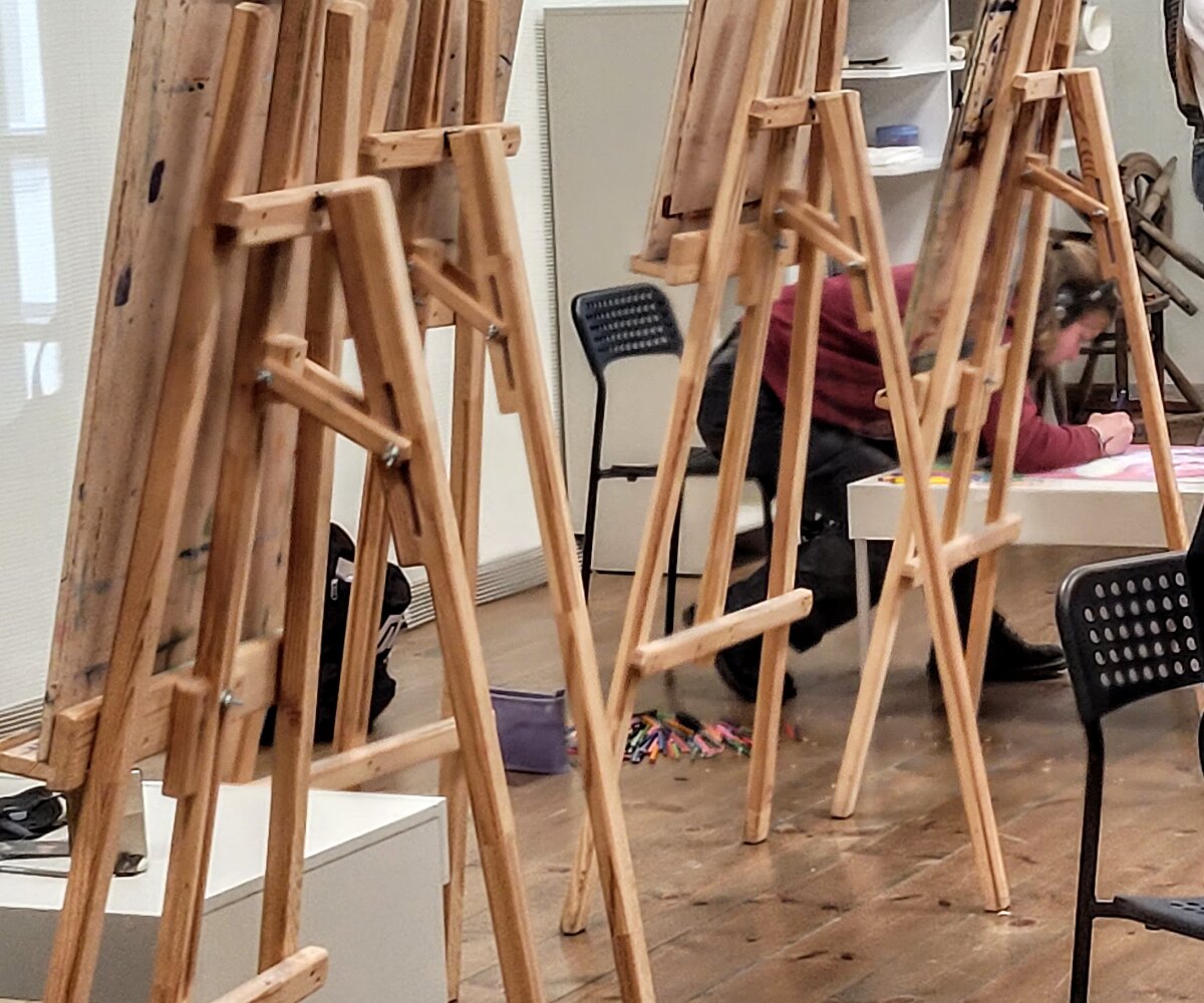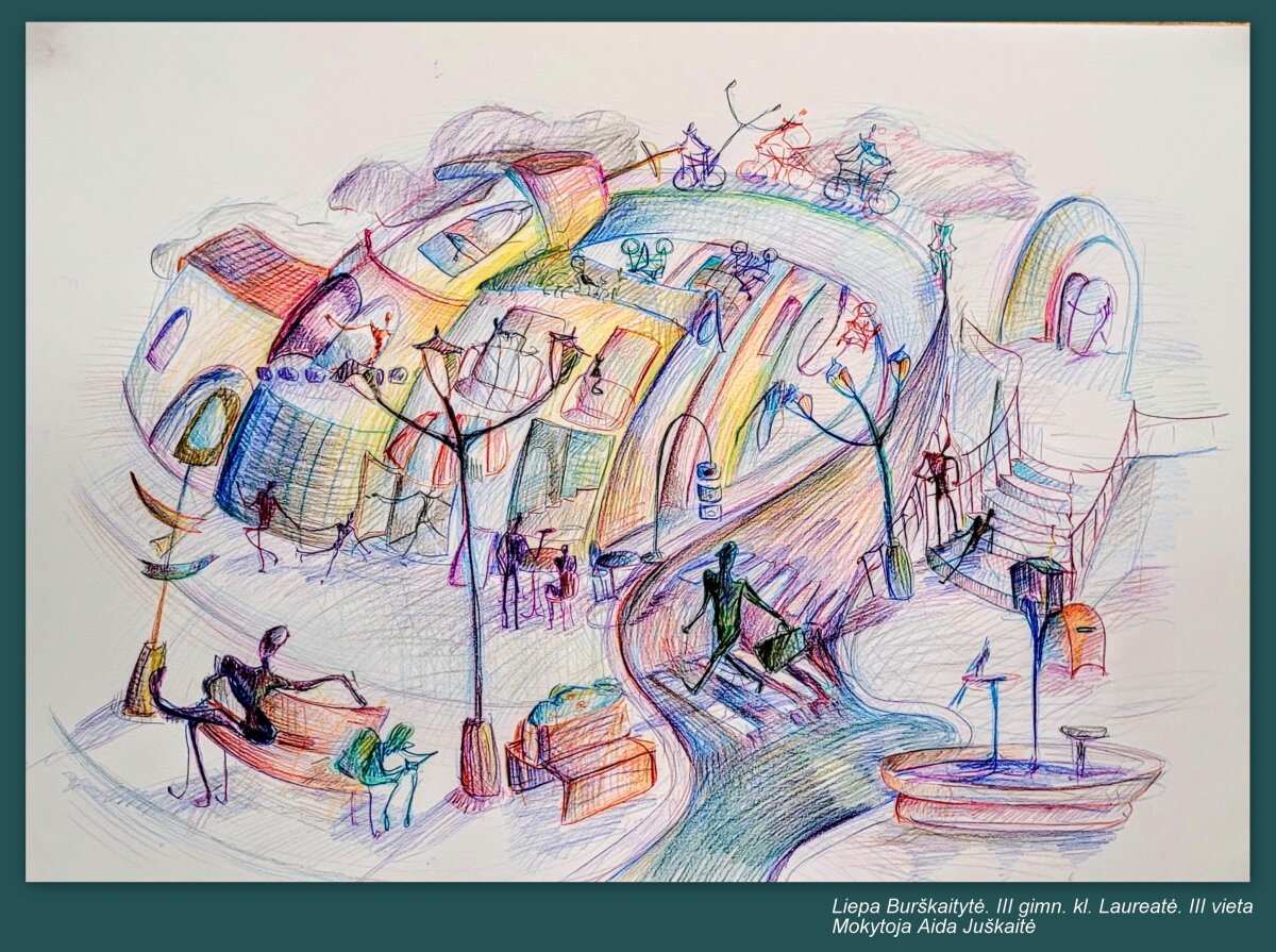 Antrą kartą į Kauną vykome jau su mokiniais – konkurso „Aplinką kuriame patys“ dalyviais, kurie 4 amžiaus grupėse, turėdami tris valandas laiko, be jokios pertraukos, stovėdami prie molbertų, turėjo sukurti ir atlikti piešinį spalvotais ar nespalvotais pieštukais dideliame A2 formato lape (tik jauniausi – A3 formato). Tai tikrai labai sunki užduotis. Temos kiekvienai amžiaus grupei skyrėsi. 5–6 klasių mokiniai kūrė pasakų knygos viršelį, 7–8 klasių tema „Mano svajonių spinta“, 9–10 klasių – „Mano spalvotas kambarys“, 11–12 klasių – „Gatvė, kurioje gera gyventi“. Kol mokiniai piešė, mokytojams buvo organizuotos įvairių sričių kūrybinės dirbtuvės, leidžiančios pagilinti, praturtinti kūrybines kompetencijas. Atmosfera – tikrai darbinga visiems.