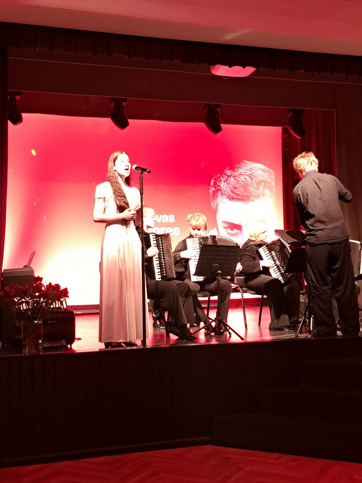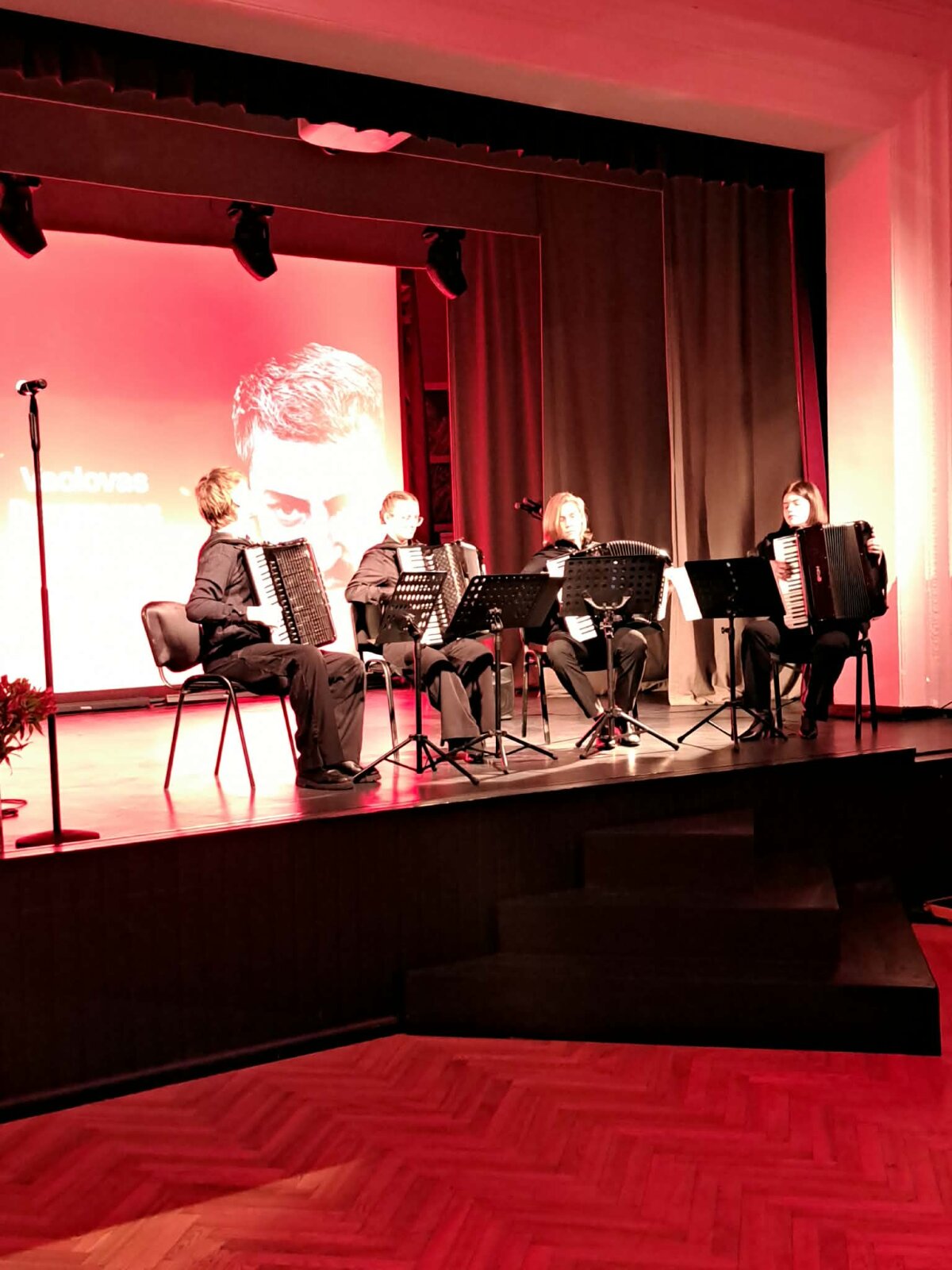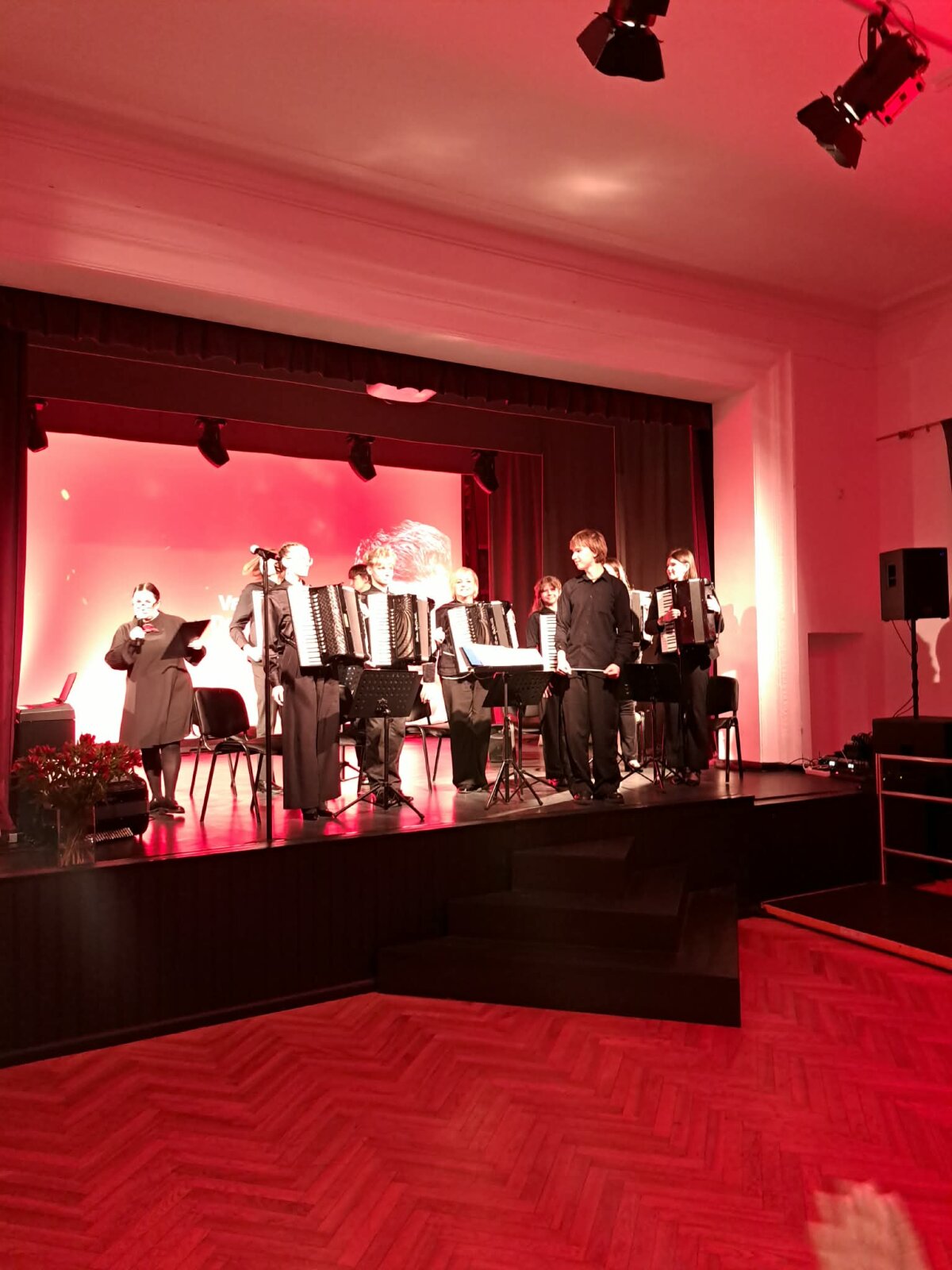 Koncerte dalyvavo Šiaulių Sauliaus Sondeckio menų gimnazijos akordeono ir dainavimo atlikėjo raiškos mokiniai. Šaunūs mokinių pasirodymai, žiūrovų susižavėję šūksniai ir plojimai šildė vakaro atmosferą. Šio vakaro atlikėjai: Adrijus Balčiūnas, Ervidas Balčiūnas, Kamilė Dargužaitė, Gabrielė Druskelytė, Gabija Janauskytė, Jonas Vincas Katkus, Aleksas Katkus, Adrija Bieliūnaitė, Benas Budreckis, Marija Mangirdaitė ir Emilija Dubro. Mokiniai pasirodė grodami duetais, kvartetais ir akordeonininkų orkestre. Koncertui mokinius parengė mokytojos Daiva Vasauskienė, Marytė Markevičienė, Irida Motekaitienė ir Beata Smiltinikienė.