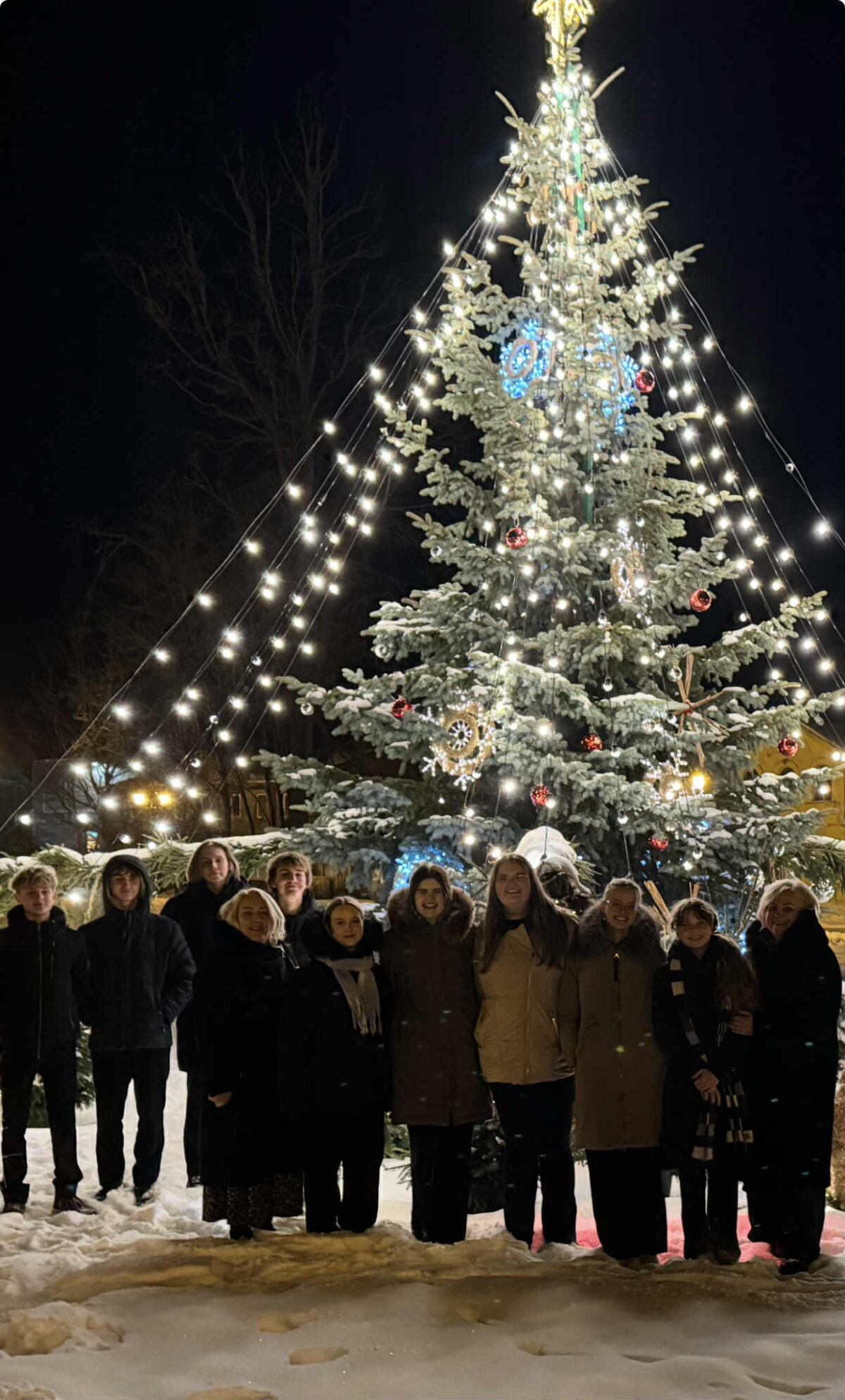 Po renginio nuėjome prie šalia esančios ir dar žibančios miestelio eglutės, pasivaikščiojome aikštėje, kur suradome profesoriui Vaclovui Daunorui kaip žymiam žagariečiui nukaldintą kėdę. Ši išvyka paliko gražius prisiminimus visiems dalyviams.