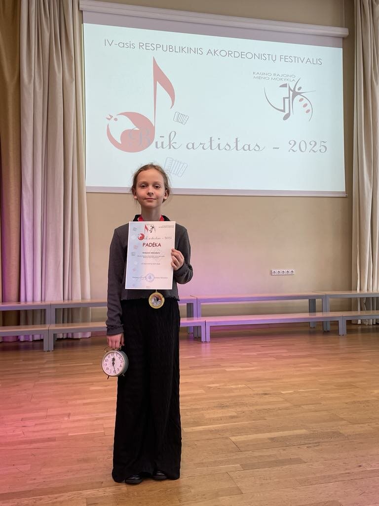 Šiaulių Sauliaus Sondeckio menų gimnazijai atstovavo keturi jaunieji akordeonistai nuo 9 iki 14 metų amžiaus grupėse. Džiaugiamės kiekvieno iš jų gražiu pasirodymu, mėgavimusi scena ir laimėtomis nominacijomis: „Už virtuoziškumą“ – Taidas Vižingis, Aleksas Katkus, Jonas Vincas Katkus, „Už muzikalumą“ – Girmantė Jablonskytė. Mokinius paruošė mokytojos Daiva Vasauskienė ir Marytė Markevičienė.