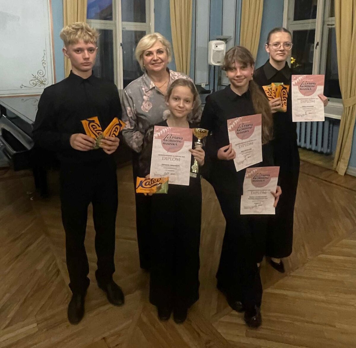 Konkursas vyko Parnu menų mokyklos patalpose, kuri įsikūrusi istorinio paveldo patalpose miesto centre. Jaukios ir puošnios patalpos: restauruotos grindys, lubos, langinės, durys, baldai, gėlių kompozicijos ir gyvų augalų kampeliai – visa tai suteikė konkursui pakilumo ir didingumo. Festivalio organizatoriai jau galvoja, kaip įamžinti kartu nueitą 25-erių metų laikotarpį. Tuo tikslu šeštadienį mes lankėmės gražiausiose miesto vietose: parkuose, pajūryje, bendravome prie Estijos akordeonisto Raimond Valgrės paminklo. Ši diena buvo skirta folklorui, visą dieną muzikavo muzikantai mėgėjai, žmonės, kurių tradicijas mes turime išsaugoti.