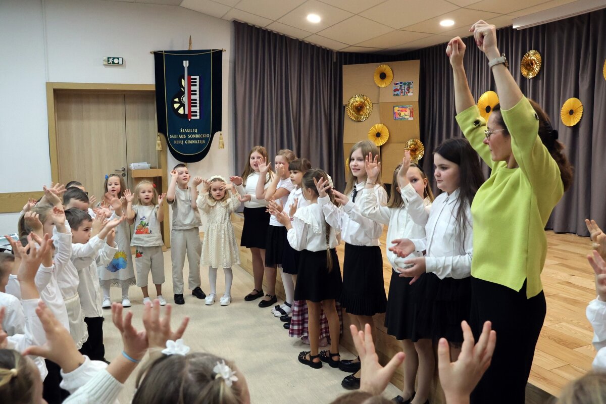Renginyje keletą dainų nuotaikingai atliko mūsų gimnazijos trečių-ketvirtų klasių ir antros klasės mokinių chorai. Renginio dalyvius pasveikino gimnazijos direktorė dr. Regina Marozienė.