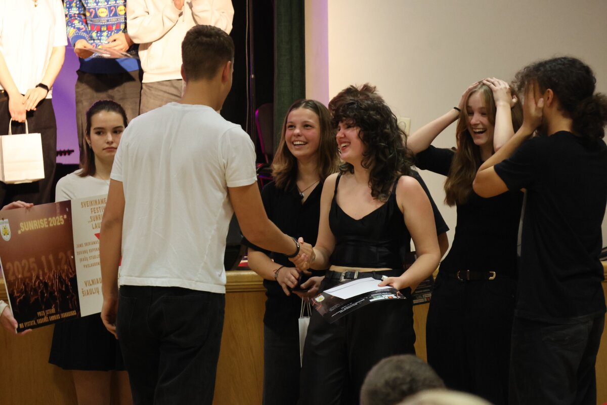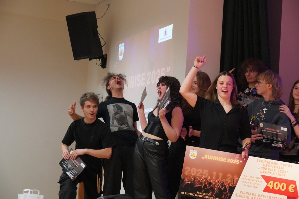 Lapkričio 21 dieną Šiaulių „Saulėtekio“ gimnazijoje organizuotas jaunimo populiariosios muzikos konkursas-festivalis „Sunrise 2025“ subūrė talentingus Šiaulių miesto kolektyvus: „Pymper“, „De Capo“, „Griliažas“, „Ekstra“, „Šalts rūsys“ ir „RED“, kurie žiūrovus žavėjo kūrybiškumu ir išskirtiniais pasirodymais. Atlikėjus vertino patyrę muzikos profesionalai: Rolandas Janušas, Laura Remeikienė, 3sun-C nariai, Mantas Babrauskas, Kasparas Kauneckas ir Šiaulių „Saulėtekio“ gimnazijos direktorė Jūratė Rimkuvienė.