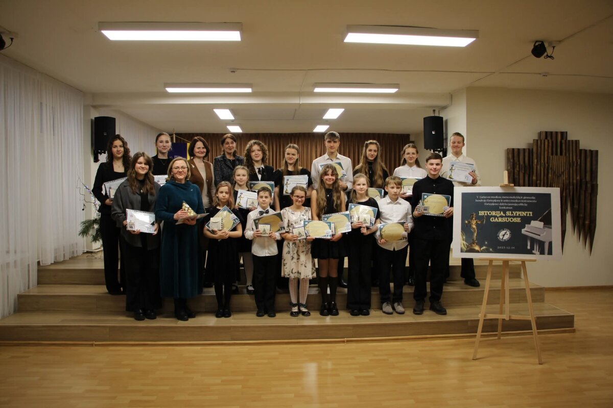 Gruodžio 19 d. Šiaulių 1-ojoje muzikos mokykloje vyko V Lietuvos muzikos, meno mokyklų ir gimnazijų bendrojo forterpijono ir antro muzikos instrumento (fortepijono) dalyko jaunųjų atlikėjų konkursas „Istorija, slypinti garsuose“. Mūsų gimnazijos mokiniai dalyvavo profesinėje kategorijoje. Tai Taidas Vižingis (mokytoja Violeta Gučienė), Izabelė Katkutė, Girmantė Jablonskytė, Adrija Bieliūnaitė (mokytoja Kristina Drakšienė), Adrijana Monstavičiūtė, Jokūbas Samkus (mokytoja Irina Tautkuvienė). Sveikinimai visiems mokiniams, pelniusiems DIPLOMUS bei publikos simpatijas, ir LAUREATO diplomu apdovanotam Jokūbui. Labai džiaugiamės ir didžiuojamės, kad mokiniais fortepijonas tampa labai artimu – per laiką, kantrybę ir meilę, o konkursai – lyg istorija garsuose – mūsų asmeninio ir muzikinio augimo patirtimi.