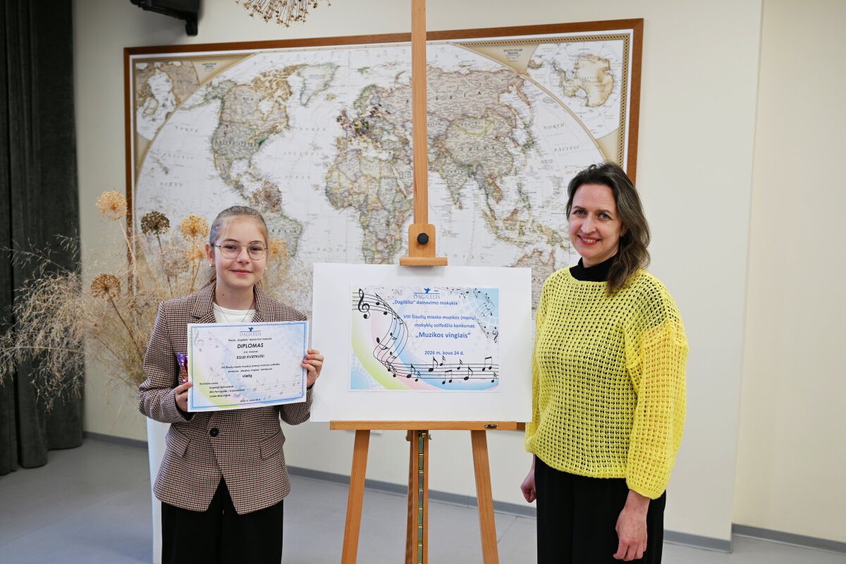 Kovo 24 dieną Šiaulių dainavimo mokykloje ,,Dagilėlis“ vyko VIII Šiaulių miesto muzikos (meno) mokyklų solfedžio konkursas ,,Muzikos vingiais“. Konkurso dalyviai solfedžiavo iš lapo vienbalsius pratimus bei dvibalsio pratimo antrąjį balsą, pirmą balsą mokytojui grojant fortepijonu. Konkurse dalyvavo 15 mokinių iš Šiaulių miesto muzikos (meno) mokyklų. Mūsų gimnazijai atstovavo ketvirtos klasės mokinė Eglė Kvietkutė. Mokinė konkurso metu parodė savo solfedžiavimo įgūdžius, susikaupimą, drąsą ir iškovojo pirmos vietos diplomą! Džiaugiamės Eglės puikiais pasiekimais! Mergaitę konkursui ruošė solfedžio mokytoja Rita Perminaitė-Krasauskienė.