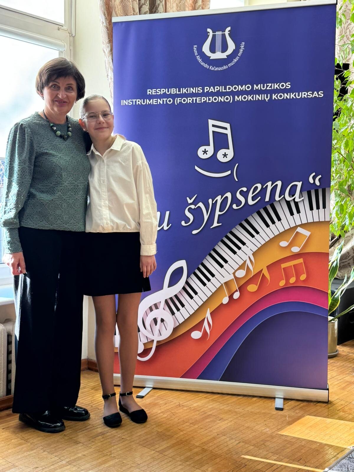 Konkurse labai sėkmingai pasirodė mūsų gimnazijos ketvirtokės Eglė Kvietkutė (mokytoja Marija Kaubrienė) ir Eglės bei Girmantės Jablonskytės fortepijoninis ansamblis (mokytojos M. Kaubrienė ir Kristina Drakšienė). Eglė buvo apdovanota I vietos laureato diplomu, taip pat ji gavo diplomą už geriausiai atliktą virtuozinį kūrinį. Mergaičių duetas buvo įvertintas II vietos laureatų diplomu. Sveikiname!