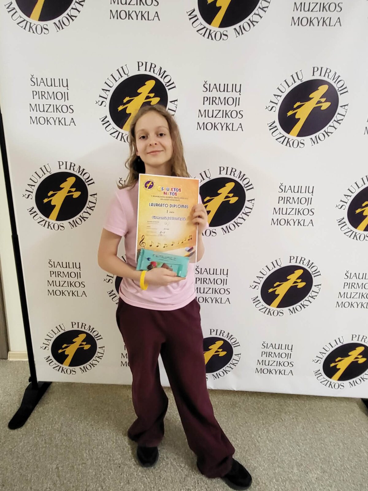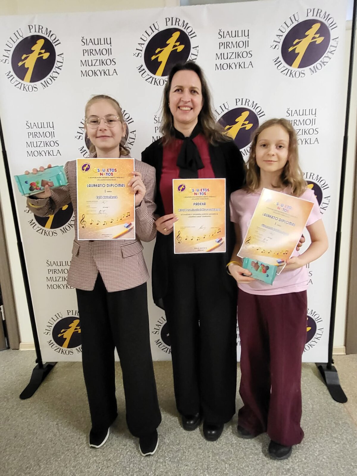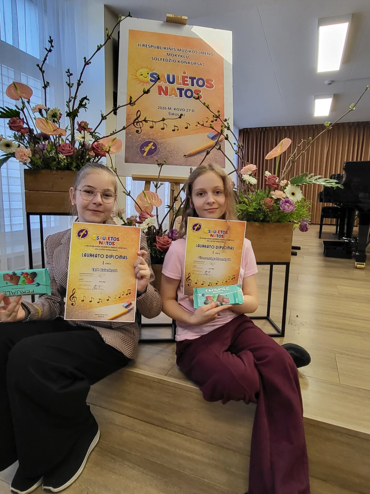 Saulėtą kovo 27 dieną Šiaulių 1-ojoje muzikos mokykloje vyko II respublikinis solfedžio konkursas „Saulėtos natos 2026“. Dalyvavo net 37 mokiniai iš visos Lietuvos. Dalyviai turėjo atlikti teorines solfedžio užduotis raštu. Mūsų gimnazijai atstovavo ketvirtos klasės mokinės Eglė Kvietkutė ir Girmantė Jablonskytė. Abi mergaitės pasirodė puikiai. Jos iškovojo pirmos vietos diplomus! Džiaugiamės mergaičių pasiekimais!