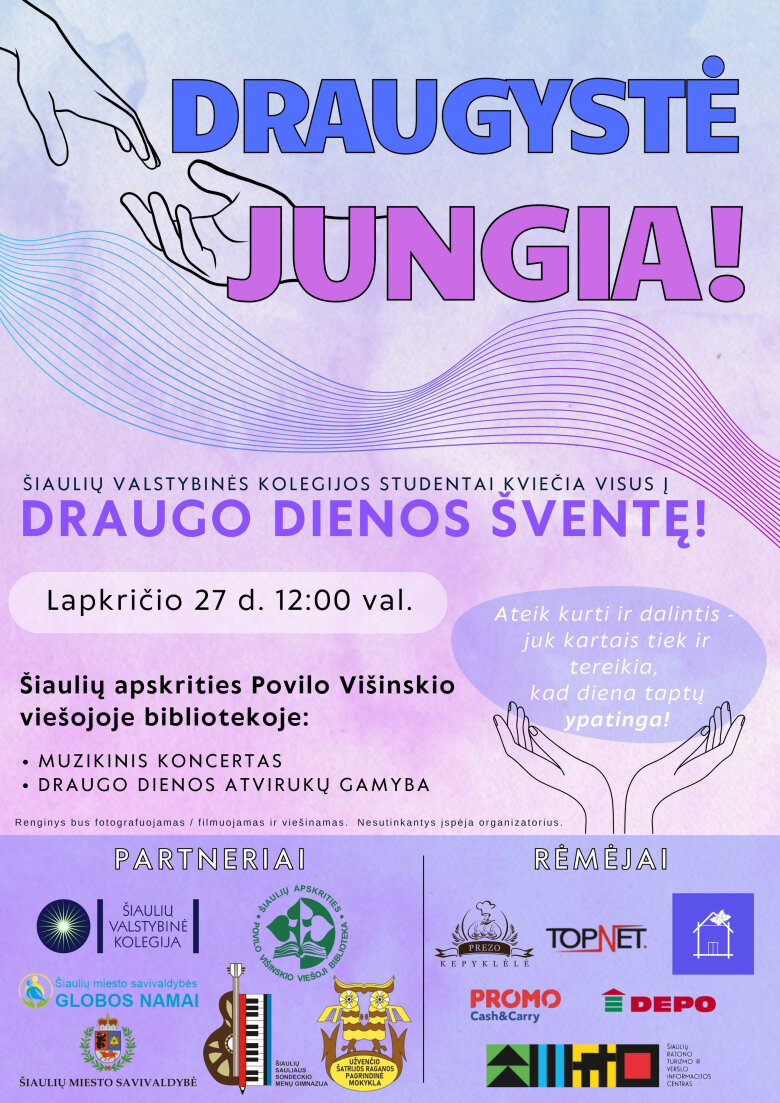 Šiaulių valstybinės kolegijos studentai kviečia visus į draugo dienos šventę