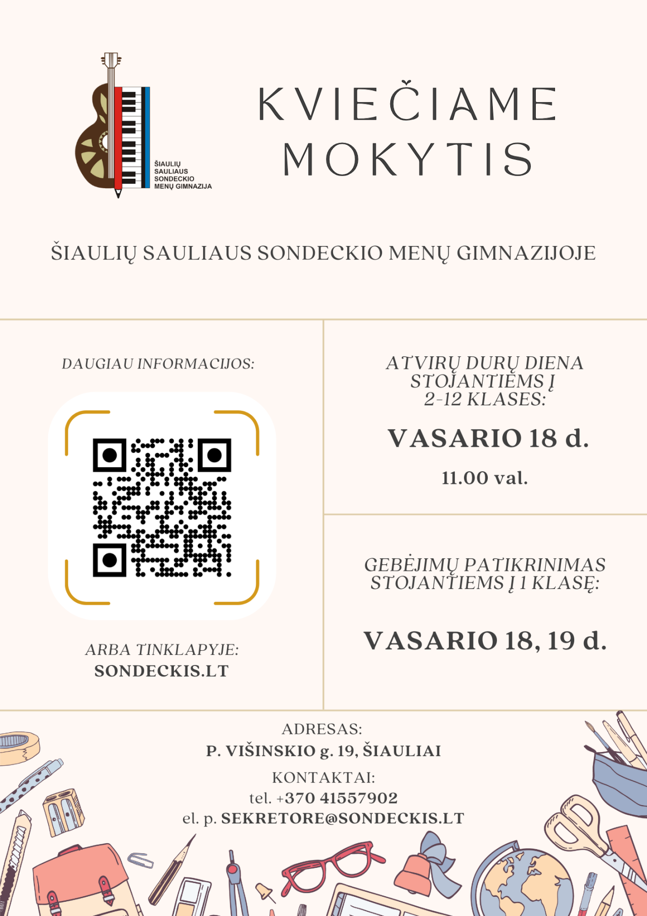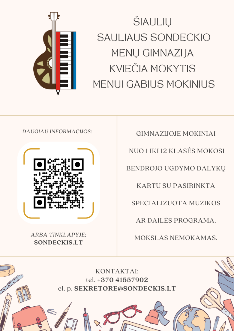 Kviečiame mokytis Šiaulių Sauliaus Sondeckio menų gimnazijo...
