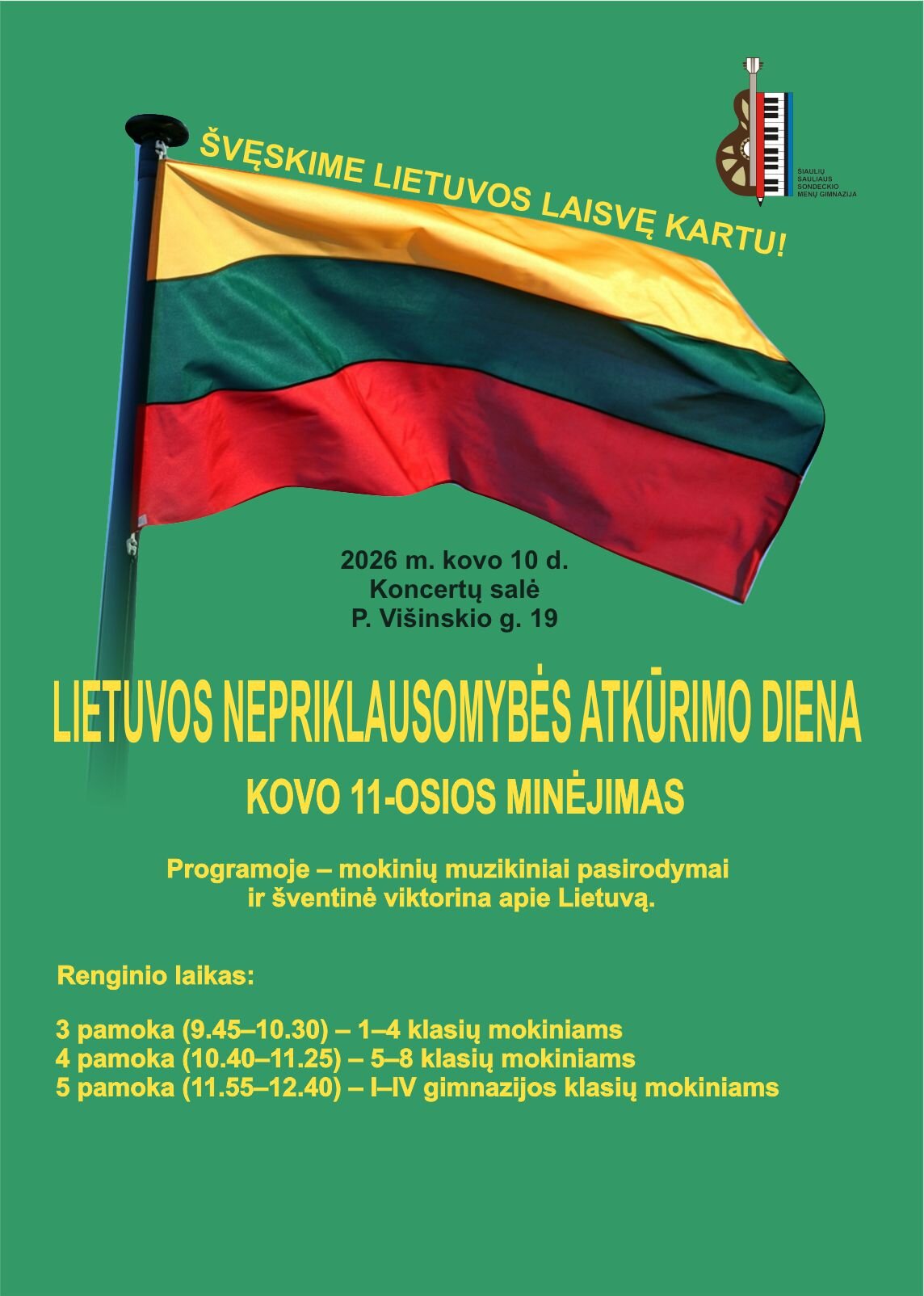 Šiaulių Sauliaus Sondeckio menų gimnazija kviečia mokytis