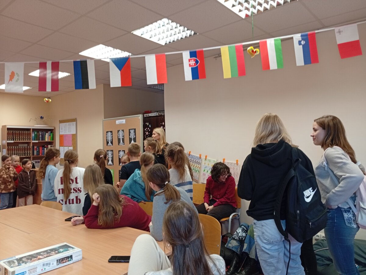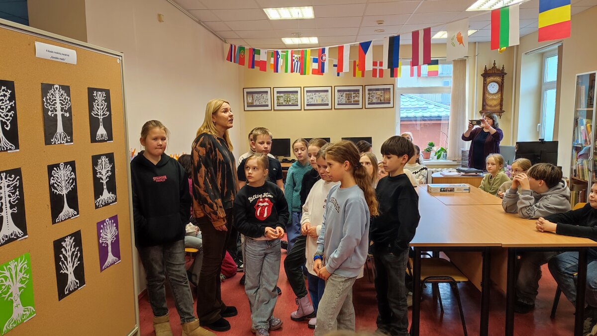 Gimnazijos bibliotekoje lapkričio 24 d. buvo atidaryta dailės mokytojos Justinos Šaltės ugdomų 4 klasės mokinių paroda „Rudeninis peizažas“. Darbeliuose vyrauja šiltos spalvos, šie kūrinėliai – gražus atsisveikinimas su rudeniu. Mažieji menininkai kartu su savo mokytoja pristatė ir karpinių parodą „Gyvybės medis“.