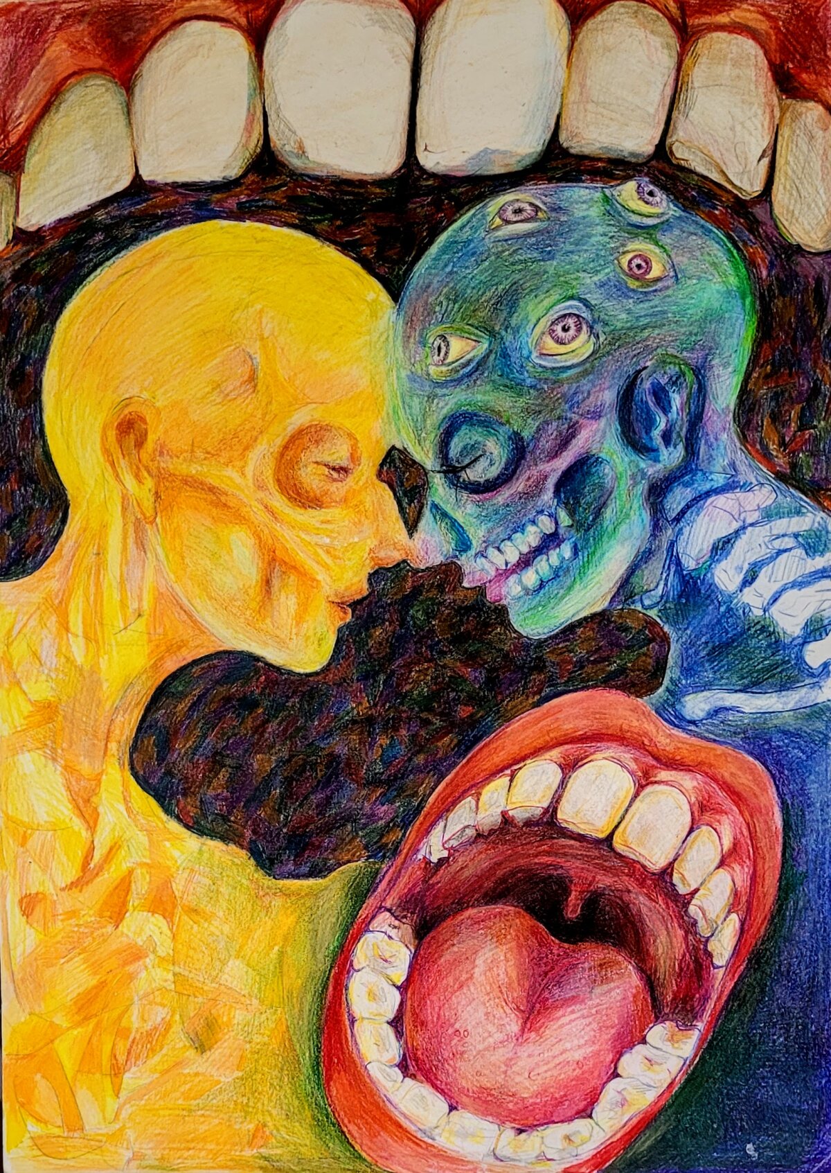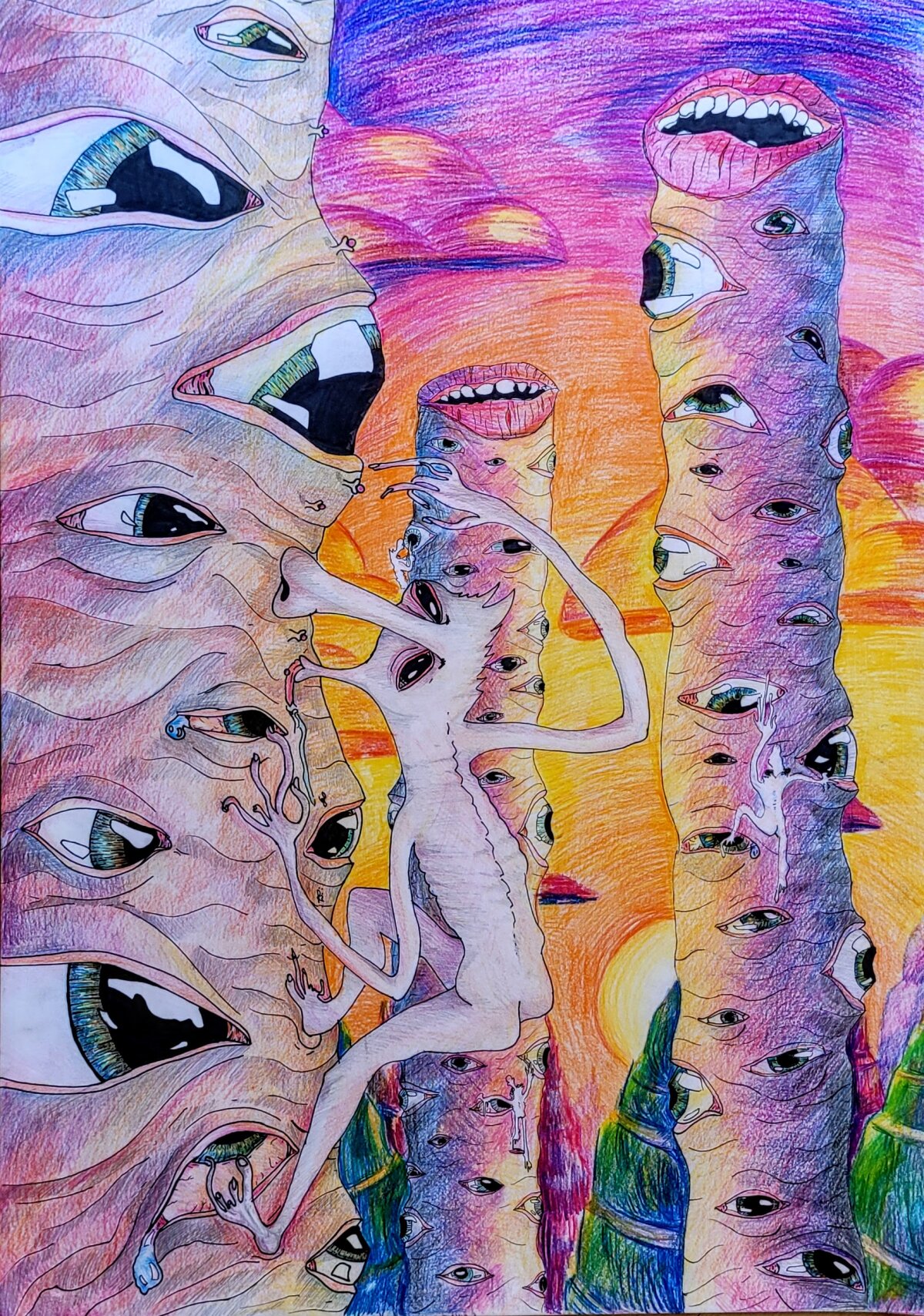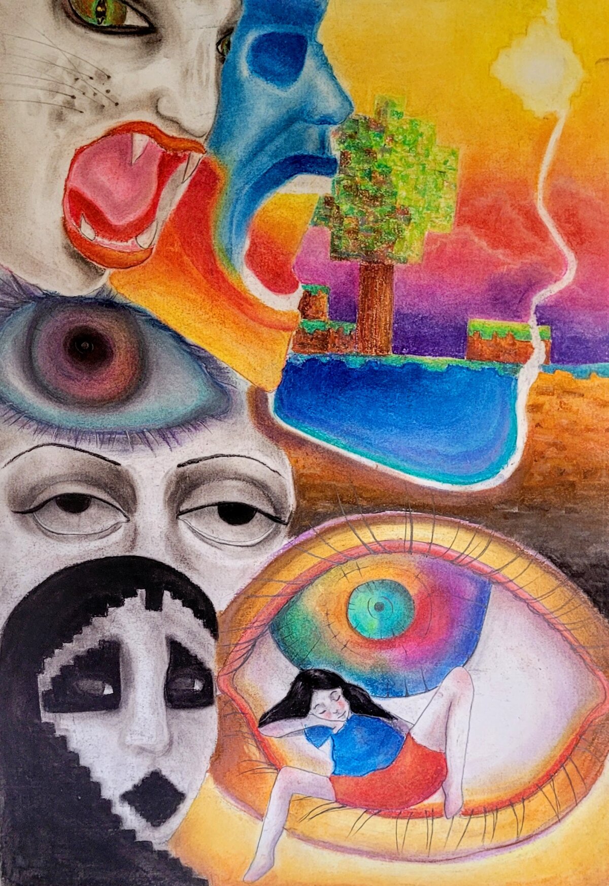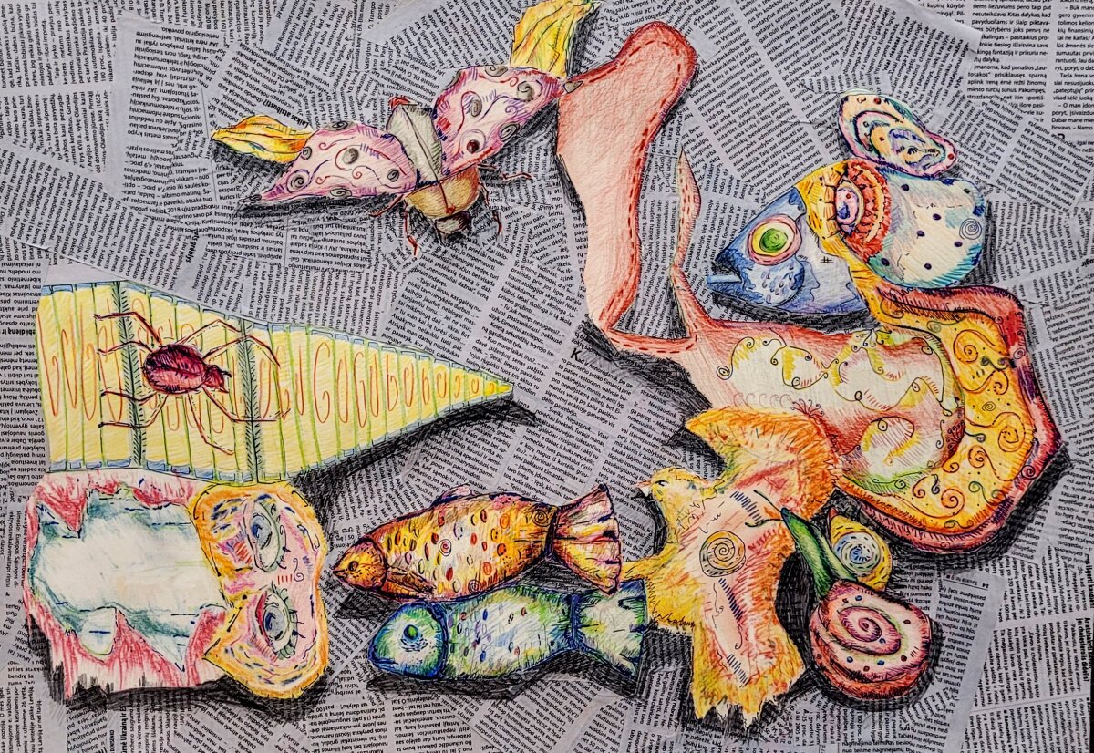 Piešimo pamokų metu įgytus įgūdžius vaizduojant žmogaus veido dalis – akis, nosį, lūpas – mokiniai, padedami mokytojos A. Juškaitės, pritaikė piešdami temines kūrybines kompozicijas, kuriose naudojo įvairias priemones – sausą pastelę, paprastus ir spalvotus pieštukus, markerius, anglį.