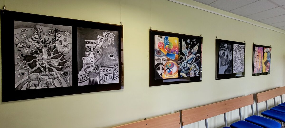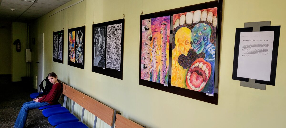 Gimnazijos pirmo ir antro aukštų galerijose – nauja IVa ir IVb gimnazijos klasių mokinių piešinių ekspozicija. Savo kūrinius, sukurtus praėjusiais mokslo metais, pristato mokyklos abiturientai.