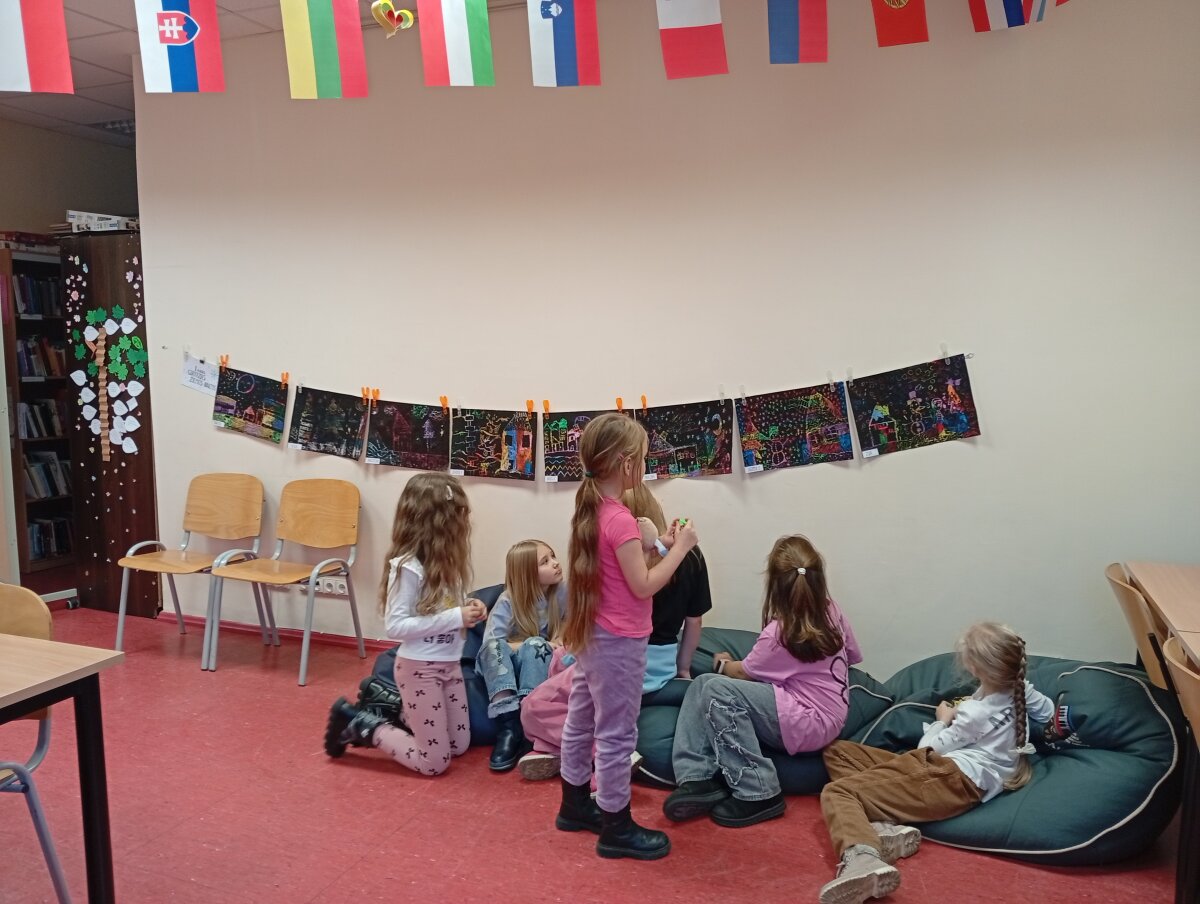 Gimnazijos bibliotekoje nuo gruodžio 10 dienos atidaryta dailės mokytojos Vidos Šambarienės ugdomų 1 klasės mokinių šventinė grotažo technika atliktų kūrybinių darbų paroda „Žiemos naktis“.