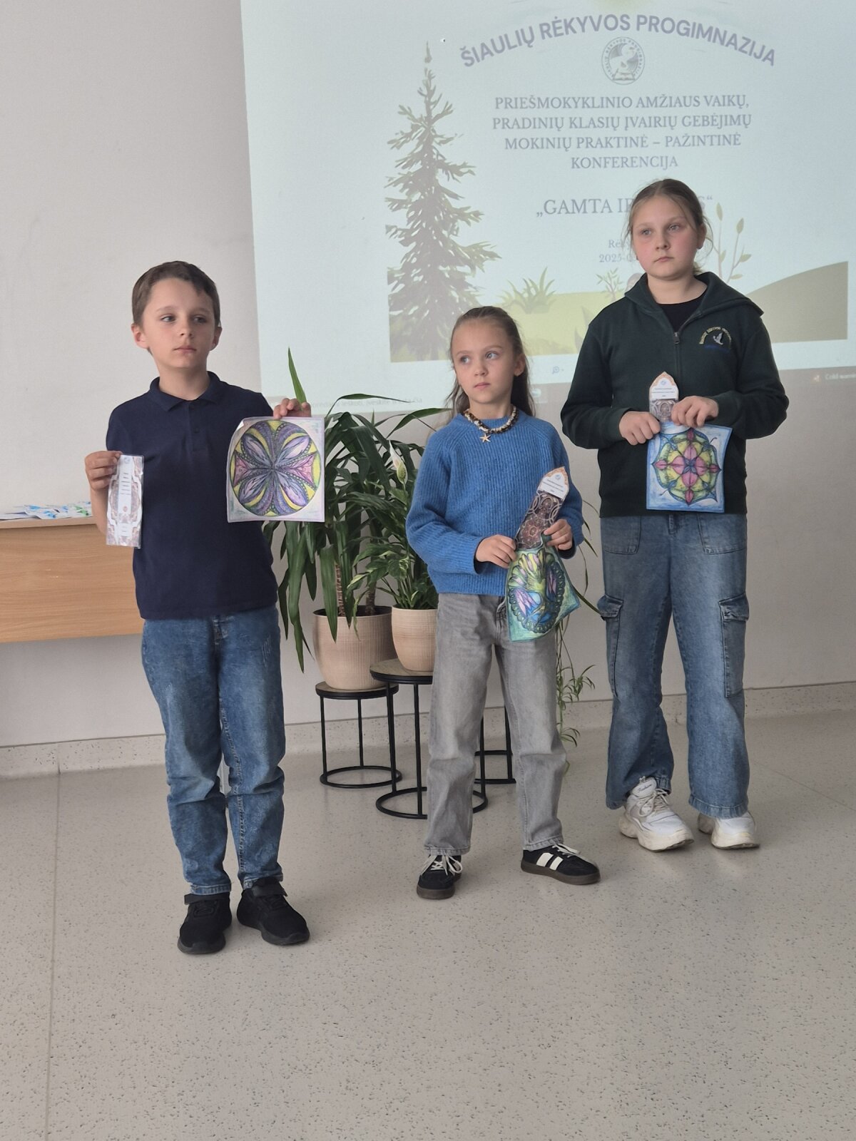 Gegužės 13 dieną Šiaulių Rėkyvos progimnazijoje vyko šalies priešmokyklinio amžiaus vaikų, pradinių klasių įvairių gebėjimų mokinių konferencija „Gamta ir vaikas“. Mūsų gimnazijos 2 klasės mokinės Izabelė Katkutė ir Melija Nekrošiūtė pristatė pranešimą „Šokoladinė mėta“, kuriame papasakojo, kaip galima auginti augalus. Po pertraukėlės vyko praktinės veiklos „Kelionė per metų laikus“. Izabelė „Pavasario“ sekcijoje dekoravo vazonėlį, į kurį pasodino serenčius. Melija „Rudens“ sekcijoje dėliojo mandalą iš gamtinės medžiagos.