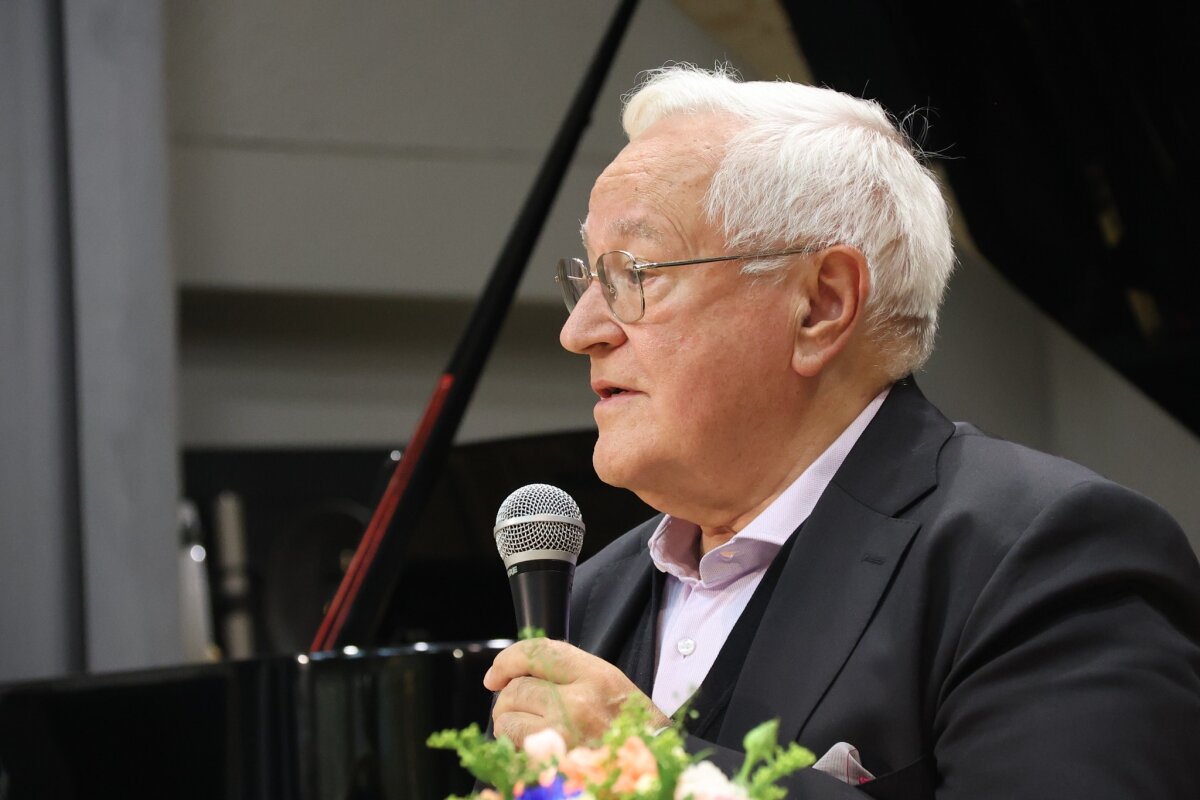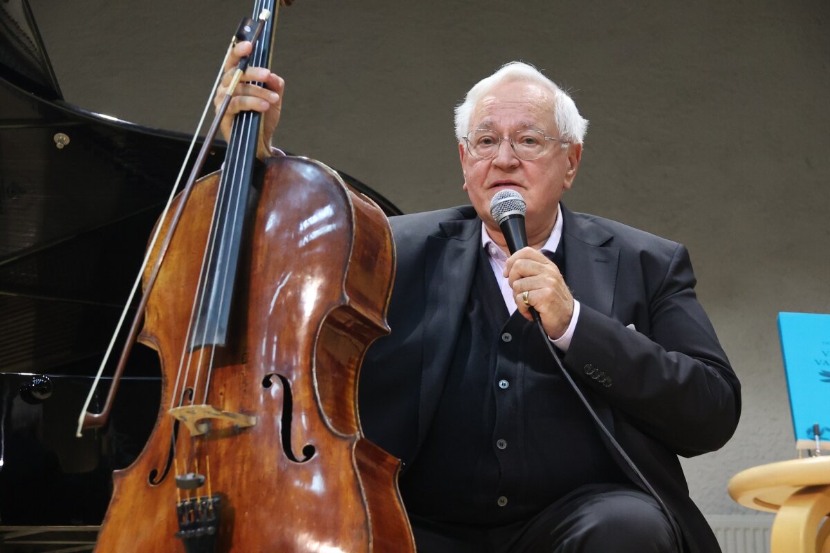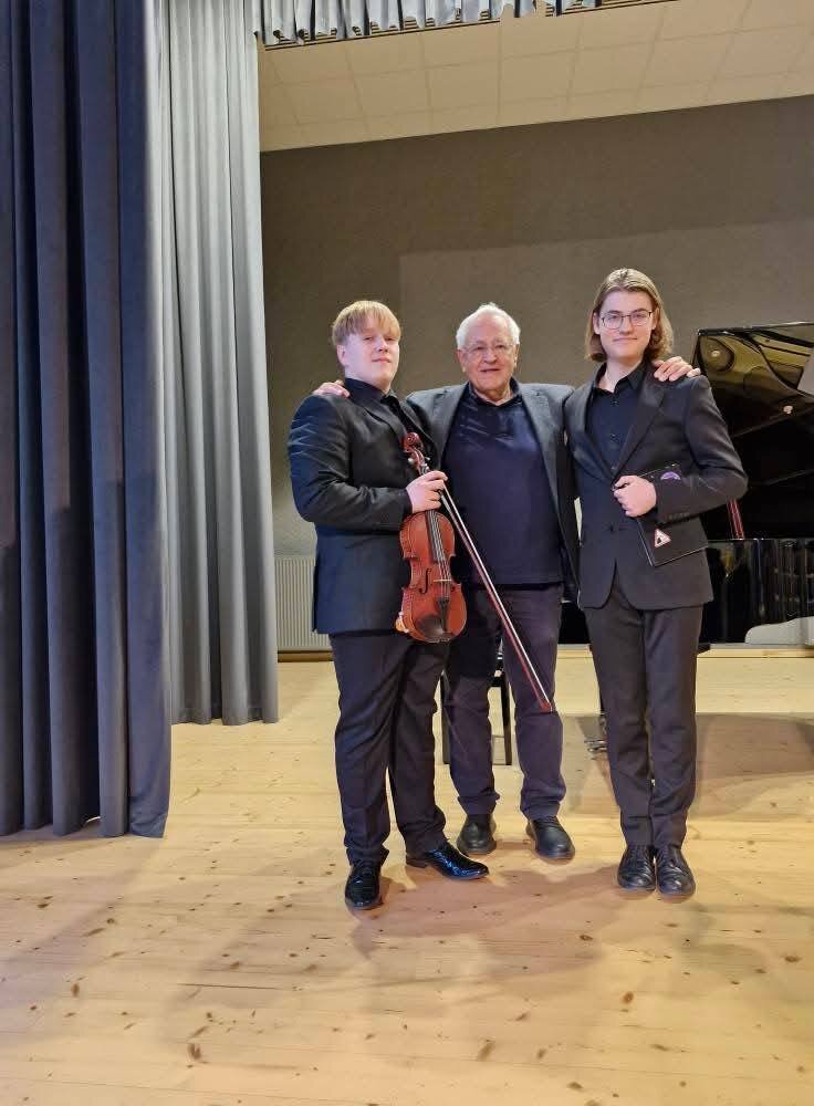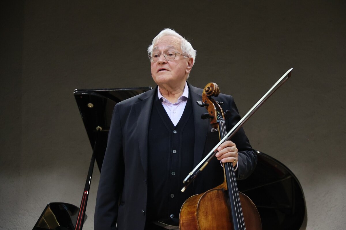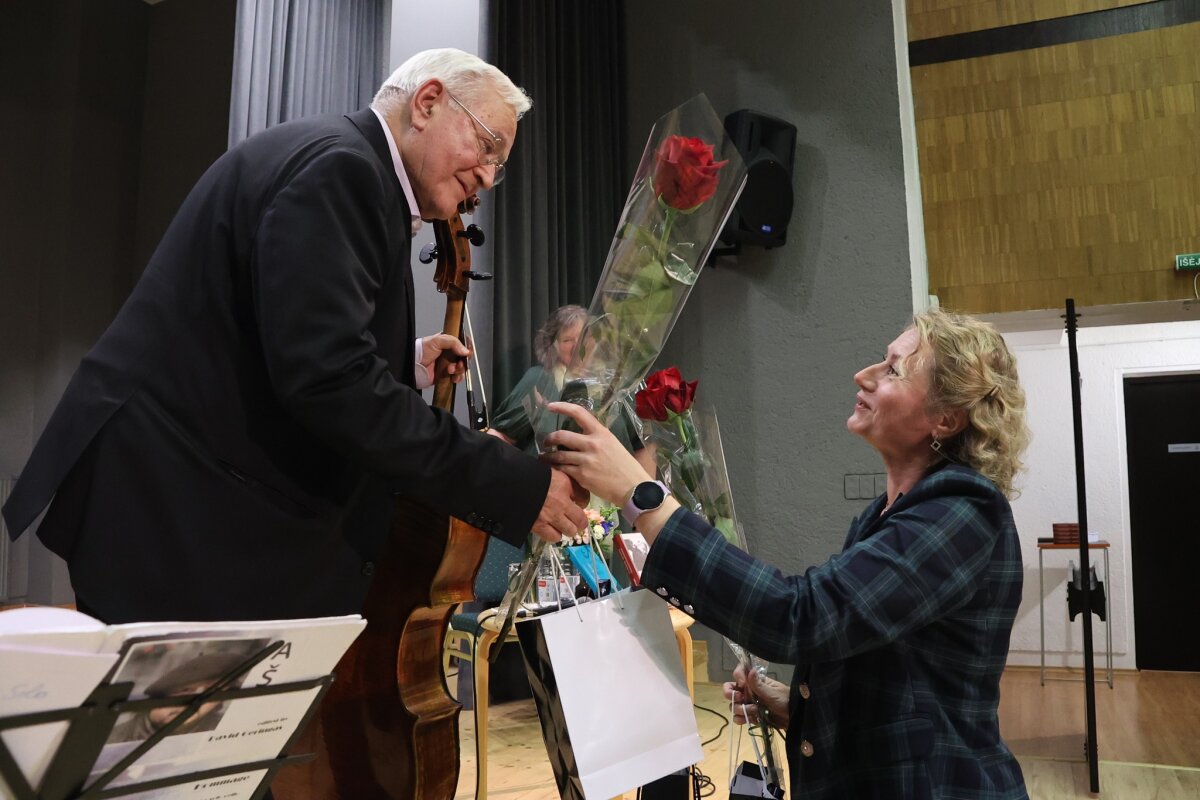 Prof. Davidas Geringas pasidalijo savo gyvenimo akimirkomis, prisiminimais apie savo mokytoją Mstislavą Rostropovičių, Saulių Sondeckį, papasakojo apie savo muzikinį kelią, šeimą, taip pat atliko keletą kūrinių, į vieną iš jų netikėtai įtraukdamas net mūsų gimnazijos mokinius Paulių ir Povilą.