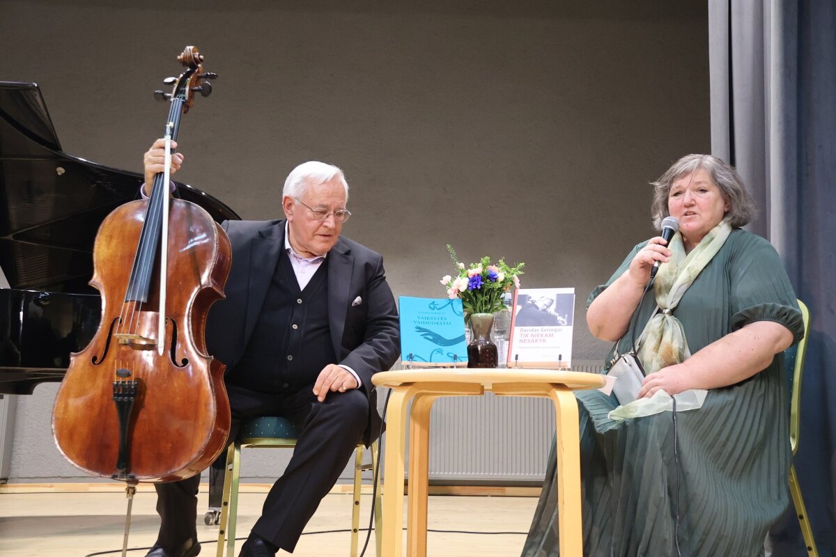 Spalio 8 d. Šiaulių kultūros centro galerijoje „Laiptai“ Lietuvos muzikų sąjunga pakvietė mūsų gimnaziją ir Šiaulių visuomenę į pasaulinio garso violončelės žvaigždės profesoriaus Davido Geringo knygos „Tik niekam nesakyk. Violončelininko prisiminimai“ pristatymą. Renginį sumaniai vedė Lietuvos muzikų sąjungos prezidentė, žurnalo „Muzikos barai“ vyriausioji redaktorė Audronė Žigaitytė-Nekrošienė