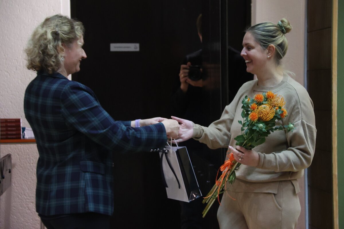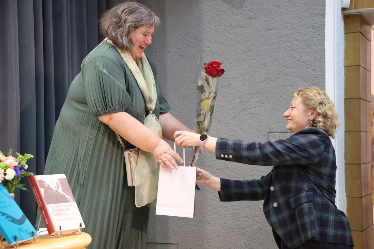 Renginio pabaigoje svečiams padėkojo mūsų gimnazijos direktorė dr. Regina Marozienė, Šiaulių miesto meras Artūras Visockas, galerijos „Laiptai“ renginių organizatorė Kristina Alseikė. Po šilto ir įdomaus renginio prof. Davidas Geringas įsigijusiems knygas dalijo autografus.