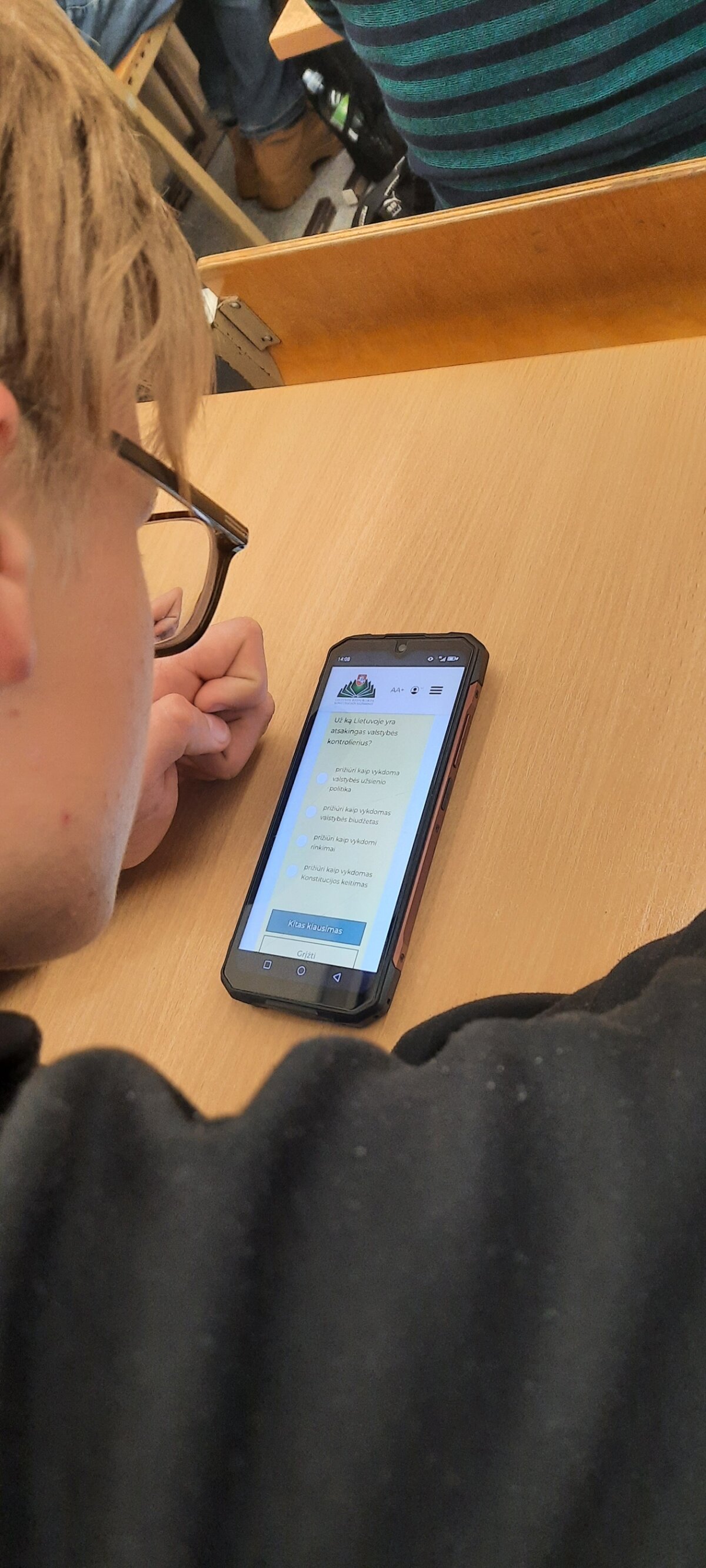 Prie šios akcijos prisijungė mūsų gimnazijos mokiniai. I egzamino etapas vyko spalio 23 d. Dalyvavo 8 ir I–IV gimnazijos klasių mokiniai. Geriausiai sekėsi Ia gimnazijos klasės mokinei Auksei Jarmalavičiūtei, surinkusiai iš 19 galimų 16 taškų.