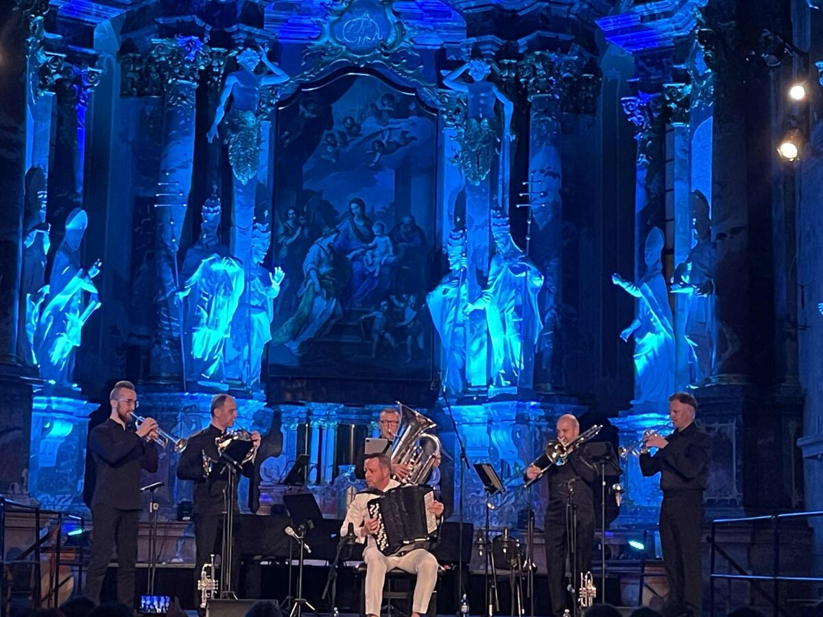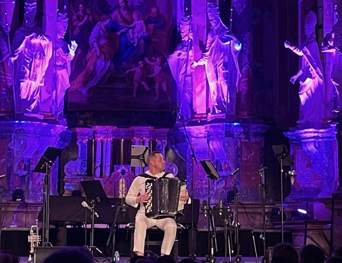 Lapkričio 17 d. Vilniaus Šv. Kotrynos bažnyčioje vyko YVES MOULIN (Šveicarija) ir SONUM BRASS ENSEMBLE koncertas, kurį išgirsti panoro beveik visi 5–12 klasių akordeonistai. Gavę administracijos leidimą į savo grupę pakvietėme kelis kitų instrumentų mokinius ir su džiaugsmu išvykome į sostinę. Turėjome galimybę išgirsti, kaip akordeono ir vario garsai jungiasi į gyvą, energingą garsų srautą, Kiekvienas kūrinys kvietė į nepakartojamą muzikinę kelionę. Atlikėjas savo programą padalijo į dvi dalis: solinė programa, kurioje skambėjo įvairių tautų ir jo paties sukurta muzika, bei programa, kuri buvo paruošta drauge su Lietuvos varinių pučiamųjų instrumentų kvintetu. Unikalus garsų pasaulis palietė kiekvieno jausmus ir ilgam liks atmintyje.