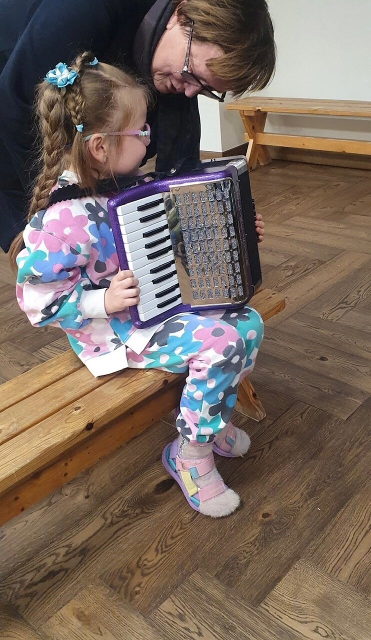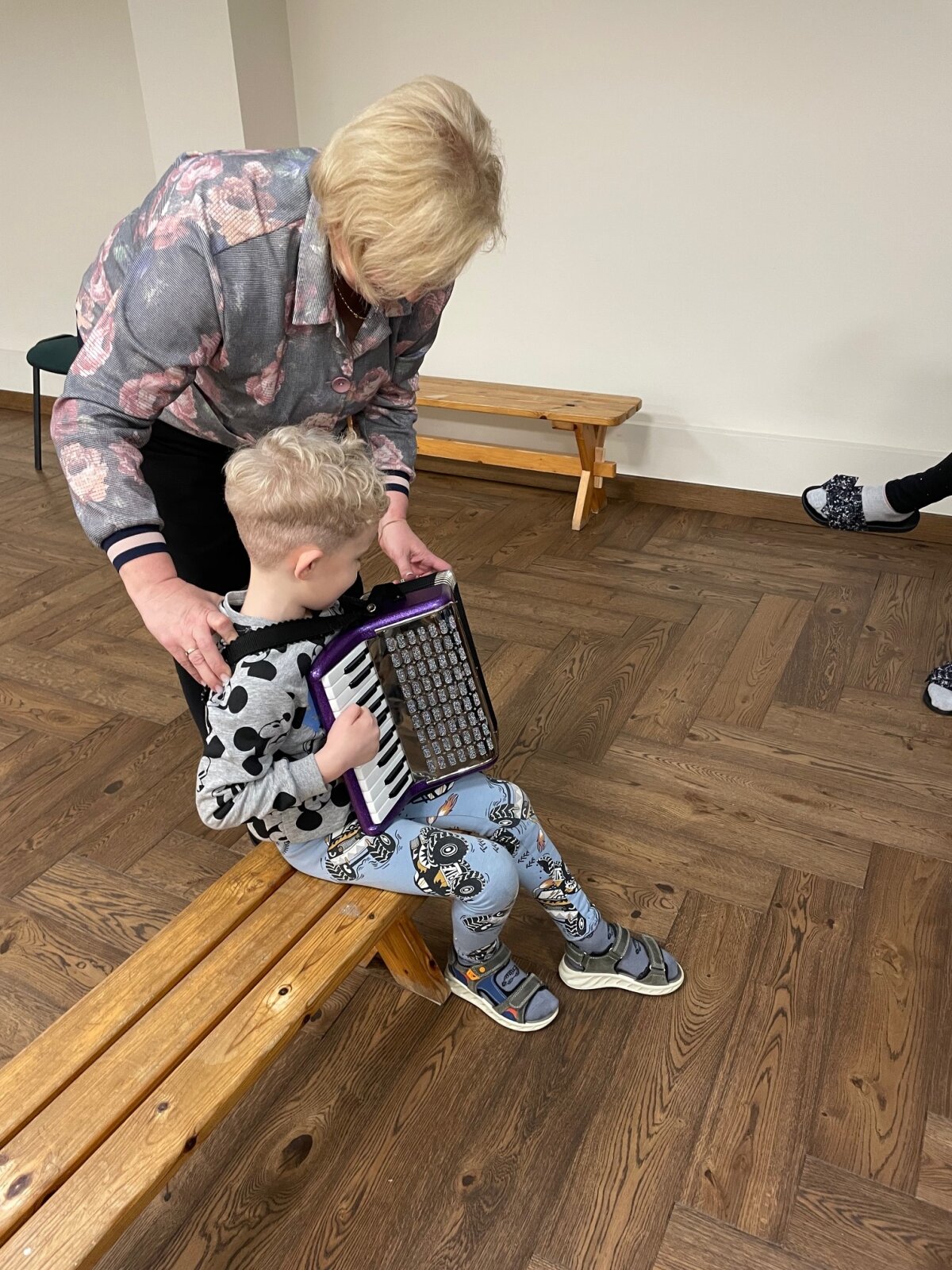 Po to vaikai patys turėjo galimybę prisiliesti prie mūsų nuostabaus mažojo akordeono ir išgauti jiems patikusius garsus, jiems talkino mokytojos Daiva Vasauskienė ir Marytė Markevičienė. Norisi tikėti, kad ne vienam iš jų atmintyje išliks šis susitikimas, o muzikos vadovė pakvietė kitam susitikimui su daugiau skirtingų instrumentų.