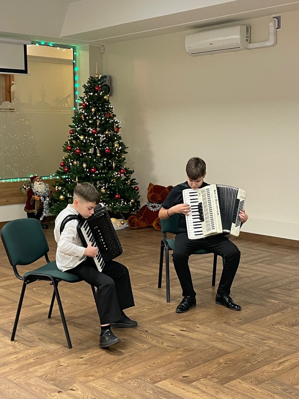 Pasaką apie akordeono garsus kūrė gimnazijos akordeonistai ir mokytoja Daiva Vasauskienė. Mūsų penktokų tėvelių iniciatyva gruodžio 22-ąją lankėmės Šiaulių lopšelyje-darželyje „Eglutė“. Tai darželis, kuriame augo mūsų mokinys Taidas Vižingis, o šiuo metu jį lanko jo jaunesnis brolis. Mus pasitiko įstaigos muzikos vadovė, turėjome galimybę bendrauti su vyriausiosios grupės ugdytiniais –penkiamečiais vaikais. Jiems tai buvo muzikos pamoka apie vieną iš muzikos pasaulio instrumentų – akordeoną. Daugelis vaikų pamatę instrumentą sakė, kad tai pianinas. Teko paaiškinti skirtumus, nes salėje stovėjo ir pianinas.
