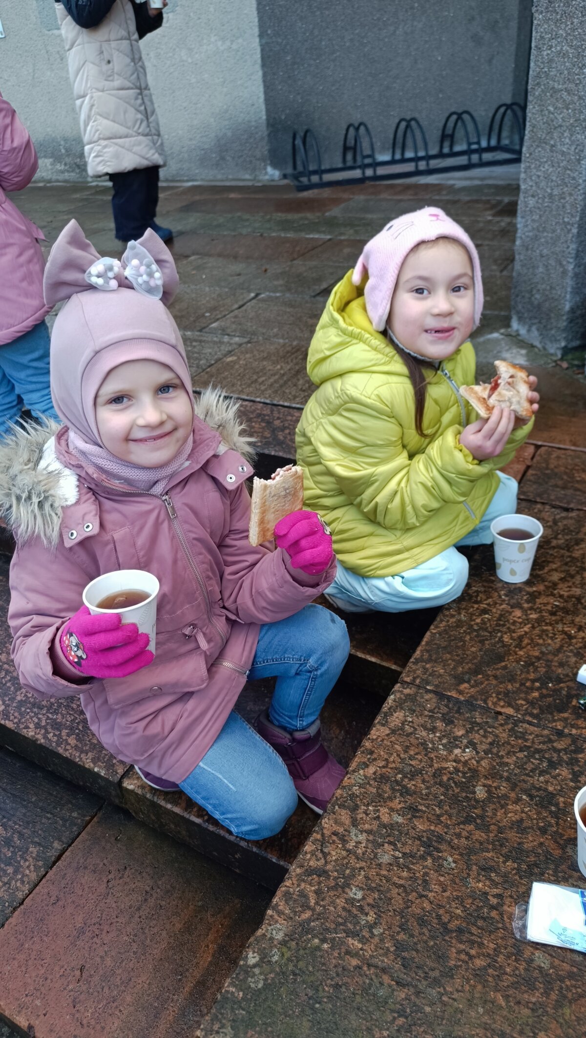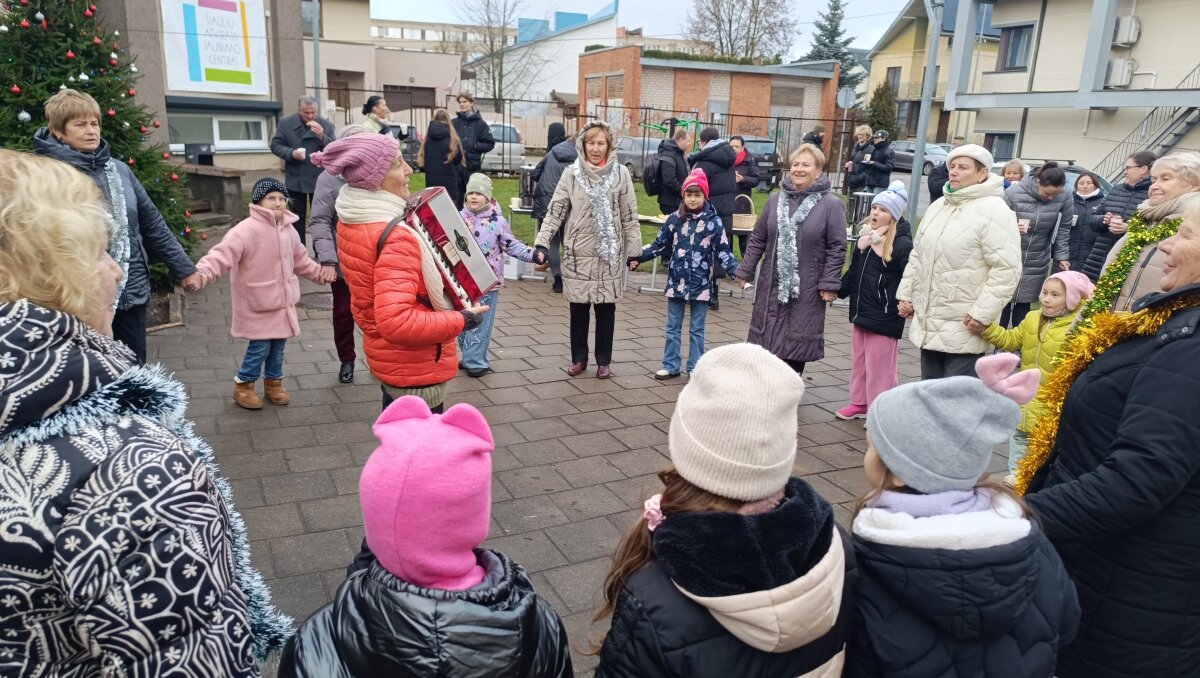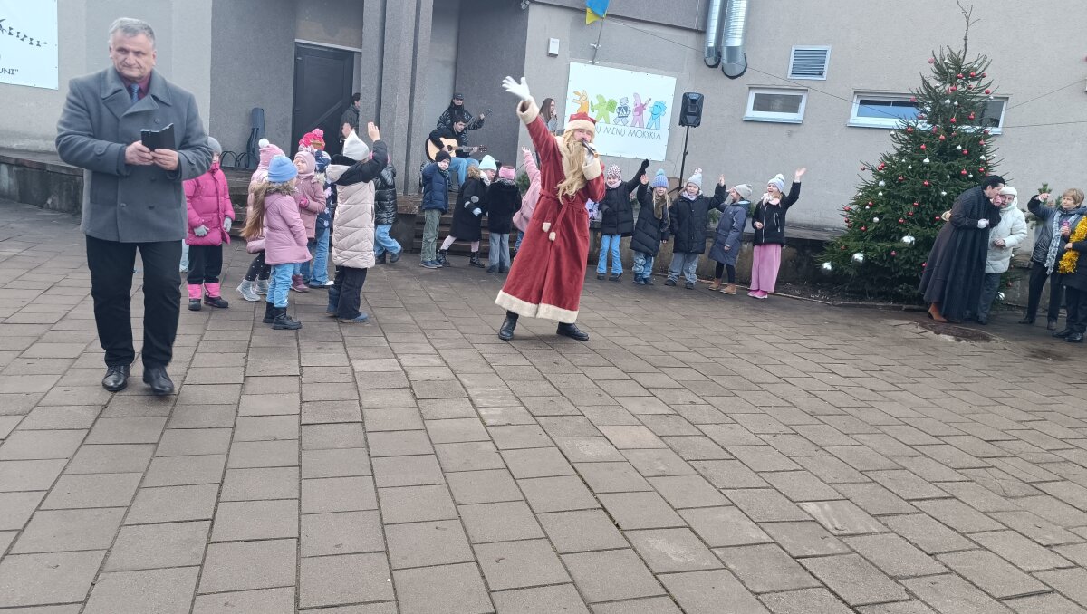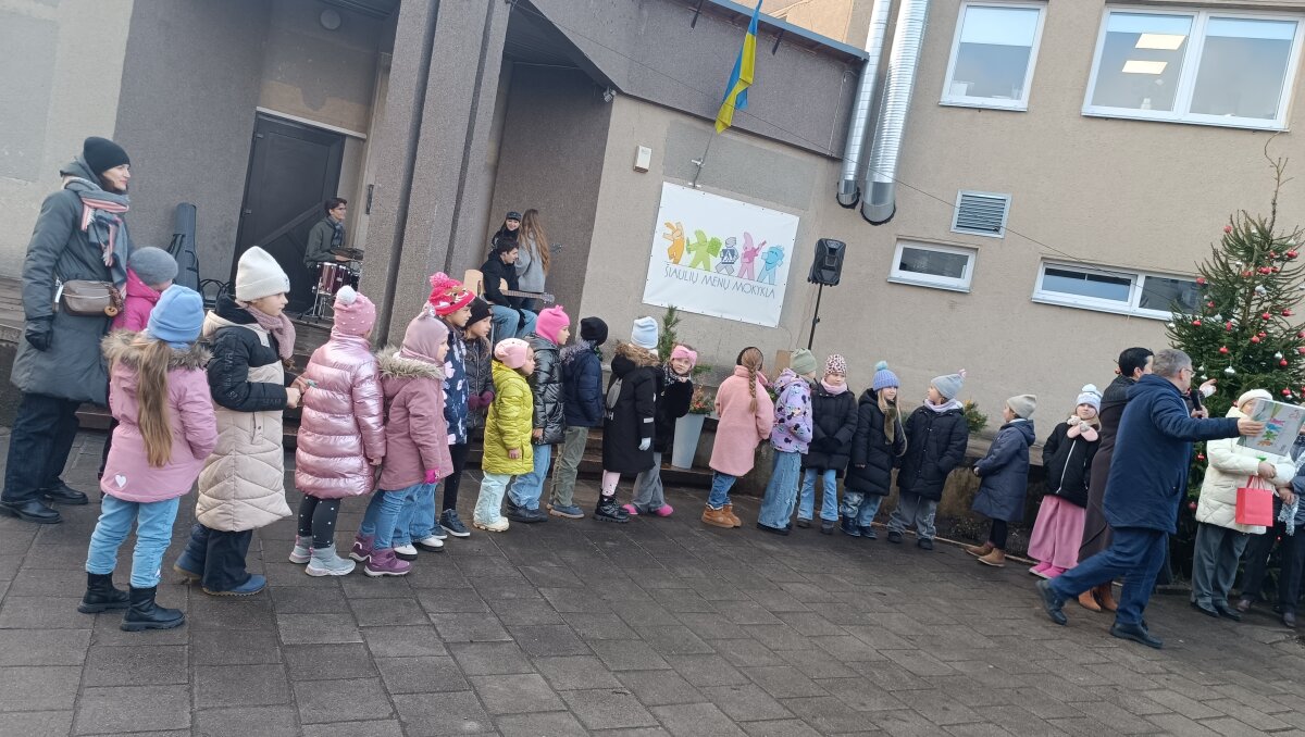 Gruodžio 12 dieną pirmos klasės mokinukai skubėjo į eglutės įžiebimo šventę, kuri vyko kaimynystėje esančiame Šiaulių atvirojo jaunimo centro kiemelyje.