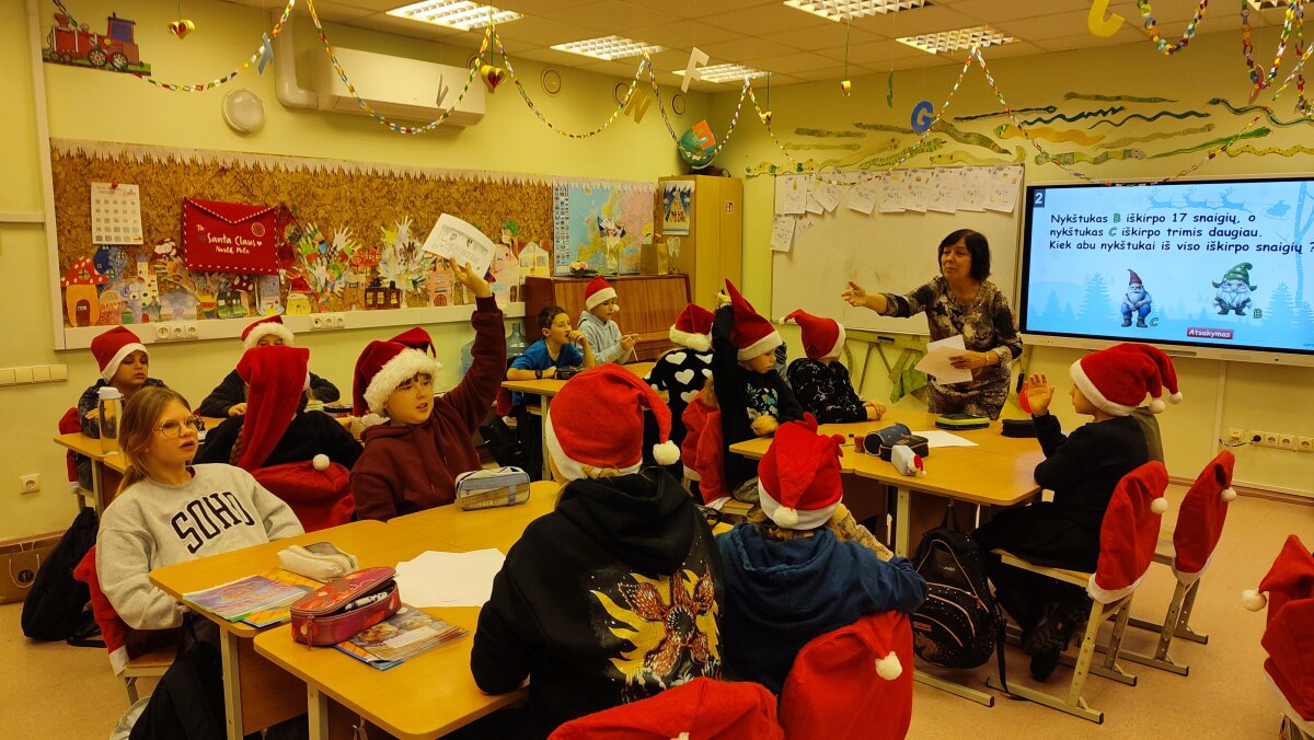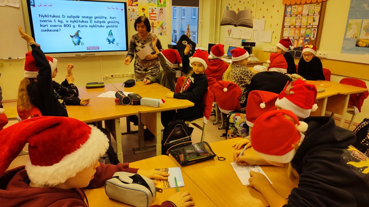 Gruodžio 17 d. ketvirtokų klasėje šurmuliavo nykštukai. Matematikos mokytoja ekspertė Laimina Naujokienė pravedė netradicinę pamoką „Nykštukai matematikoje“. Pamokos tikslas – integruoti matematikos dalyką į šventinį kontekstą, kurti pozityvią mokymosi atmosferą, skatinti mokinių kritinį mąstymą ir kūrybiškumą, ugdyti teigiamą požiūrį į matematiką.