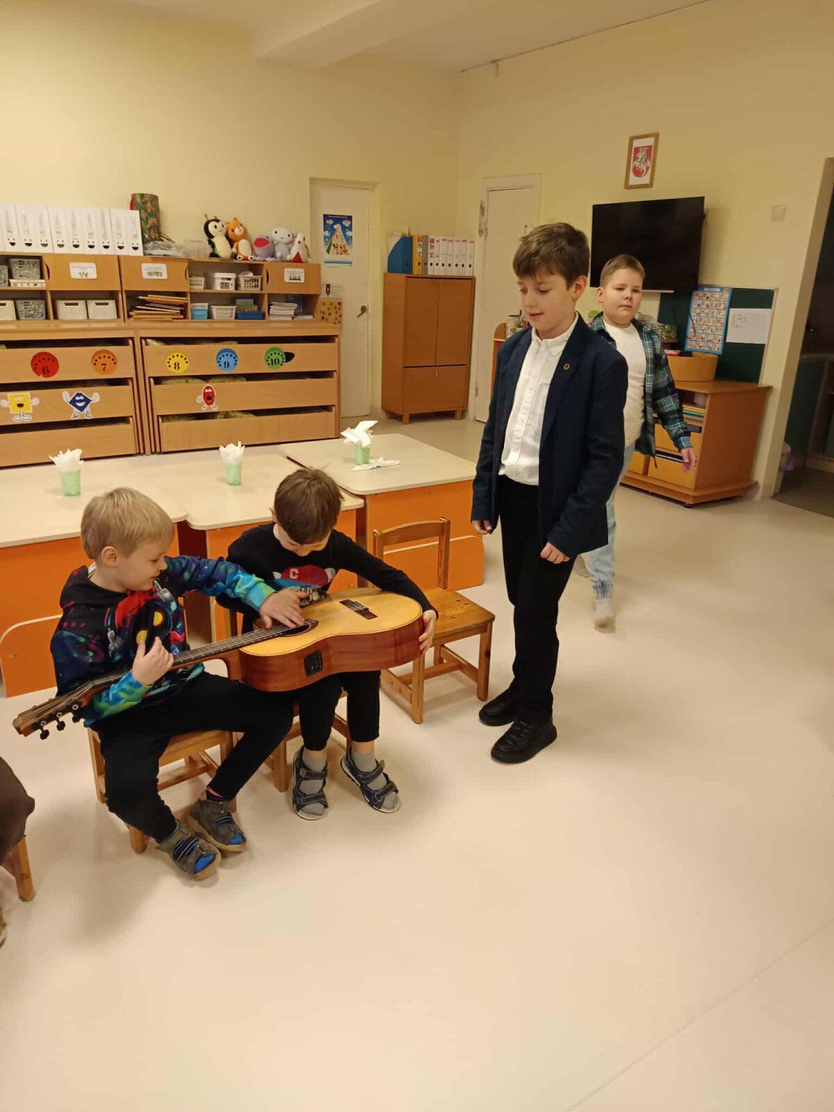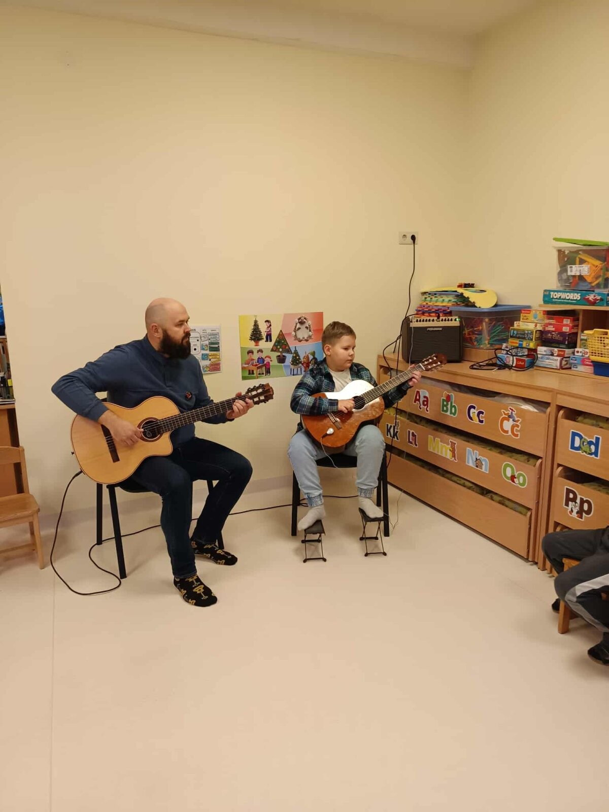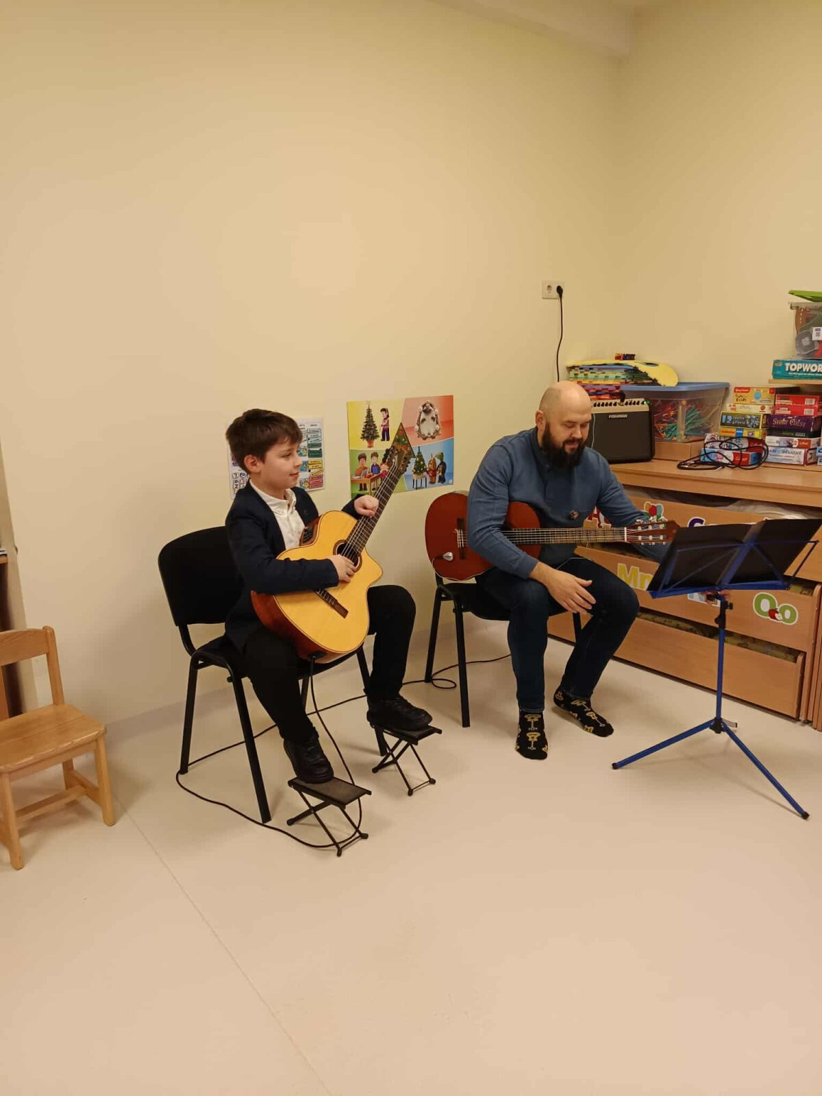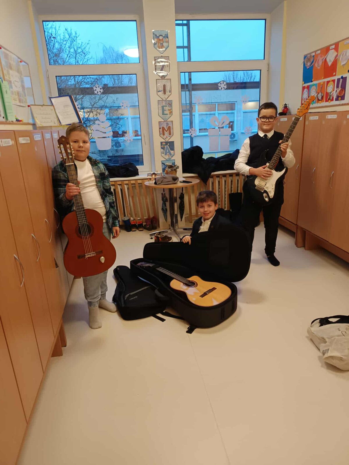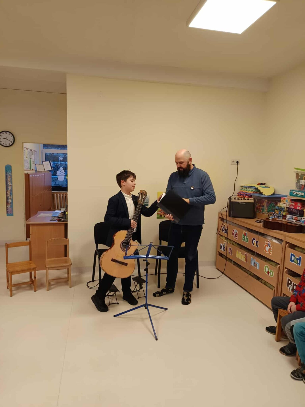 Mokiniai surengė koncertą, kuriame ne tik grojo gitaromis, bet ir trumpai pristatė instrumentus, pasidalijo, kaip mokosi groti, ką jiems reiškia muzika. Pradinukų pasirodymas buvo puikus – drąsus, nuoširdus ir kūrybingas. Mažieji žiūrovai liko sužavėti, o renginio atmosfera buvo kupina geros nuotaikos, šypsenų ir bendrystės.
