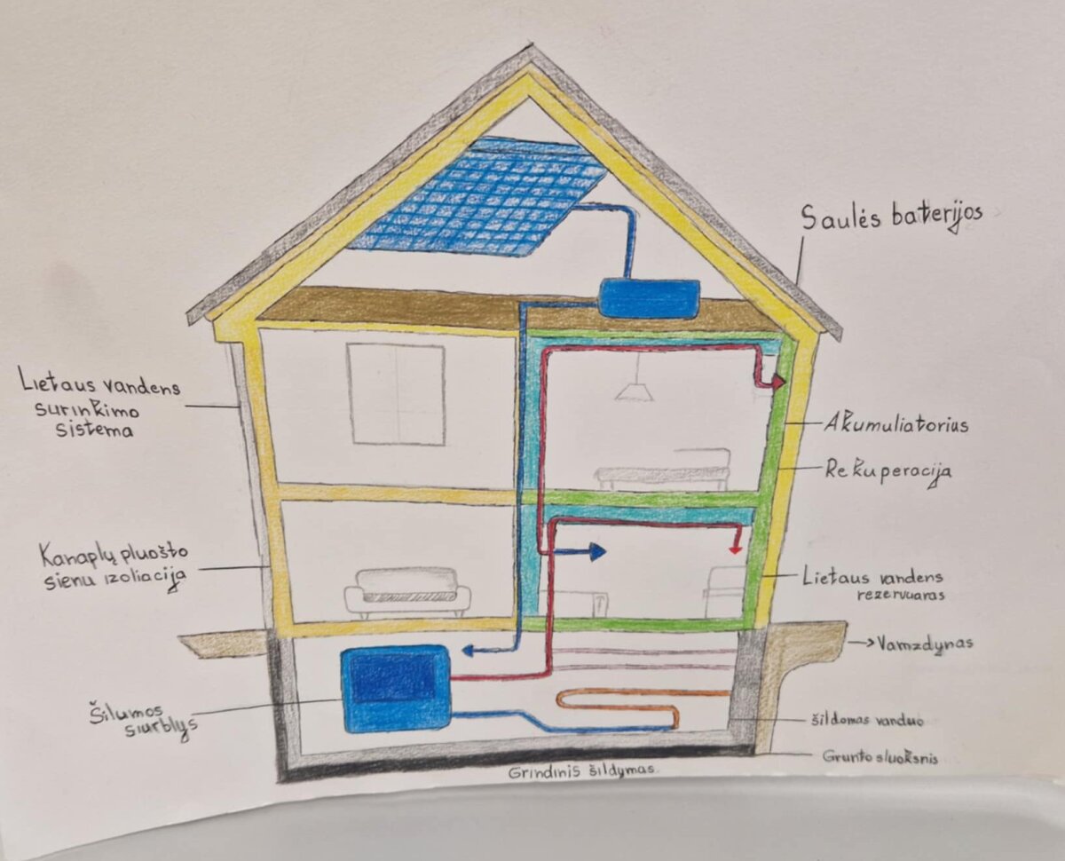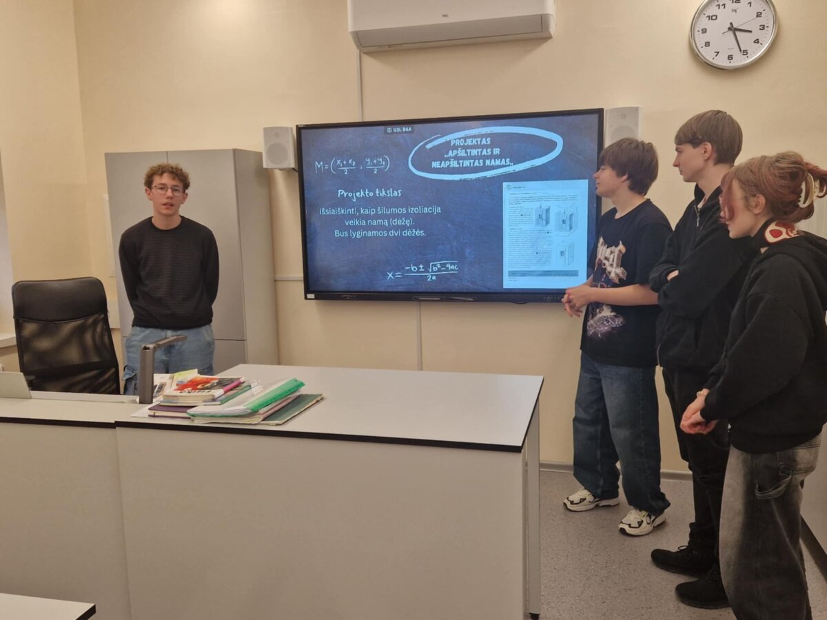 Ib gimnazijos klasės mokiniai atliko tiriamąjį darbą „Apšiltintas ir neapšiltintas namas“. Gimnazistai nagrinėjo pastatų šiluminės izoliacijos svarbą, lygindami apšiltinto ir neapšiltinto modelinio namo savybes. Patys gamino neapšiltintus ir apšiltintus modelinius namus ir stebėjo temperatūrų pokyčius, energijos nuostolius, analizavo, kaip tinkamai parinktos medžiagos bei konstrukciniai sprendimai gali pagerinti pastato energinį efektyvumą.
