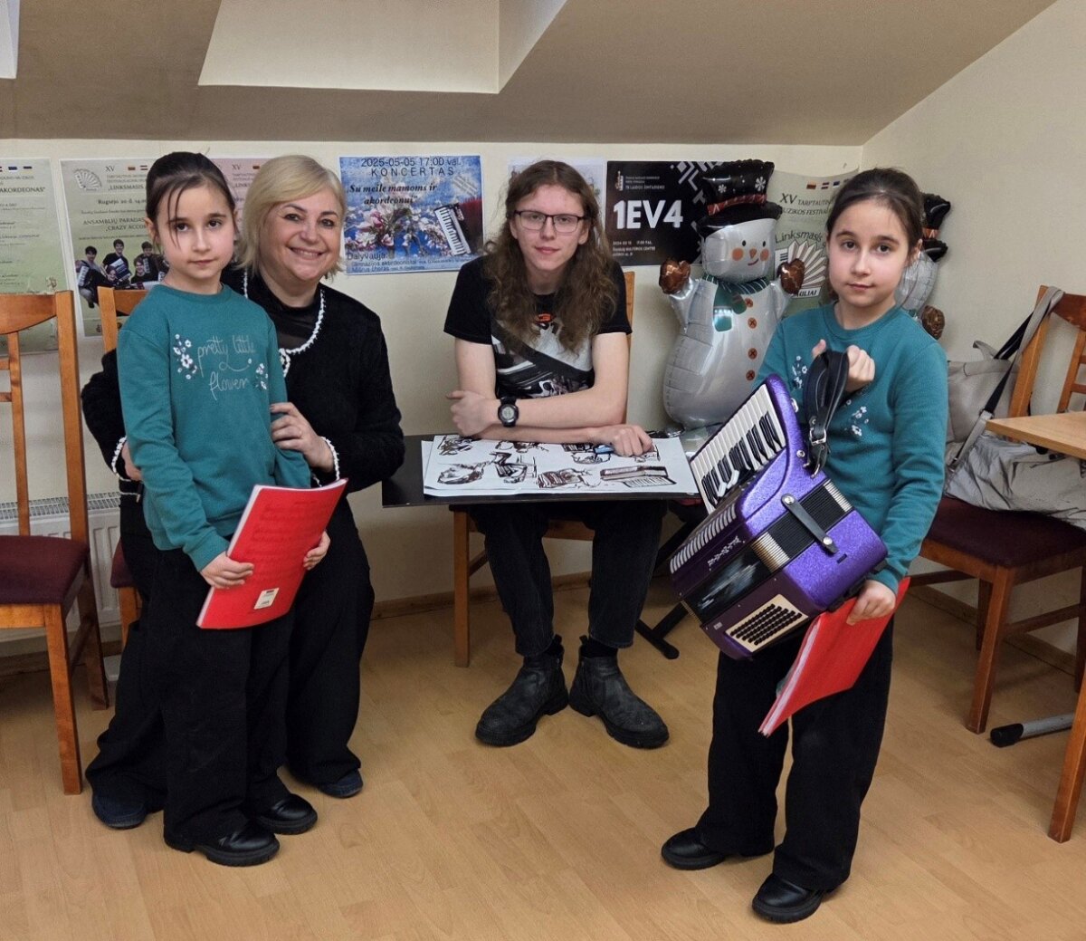 Vasario 6 d. gimnazijoje buvo pravesta integruota pamoka „Dailės ir muzikos sąveika. Mokomės pažinti“. Dalyvavo akordeono mokytoja Daiva Vasauskienė su 2 klasės mokinėmis Gabija ir Gabriele, gitaros mokytojas Kęstutis Stoškus su 6 klasės mokine Agija ir IVa gimnazijos klasės mokiniai Raminta, Aimantė ir Mantas kartu su piešimo mokytoja Irena Šliuželiene.