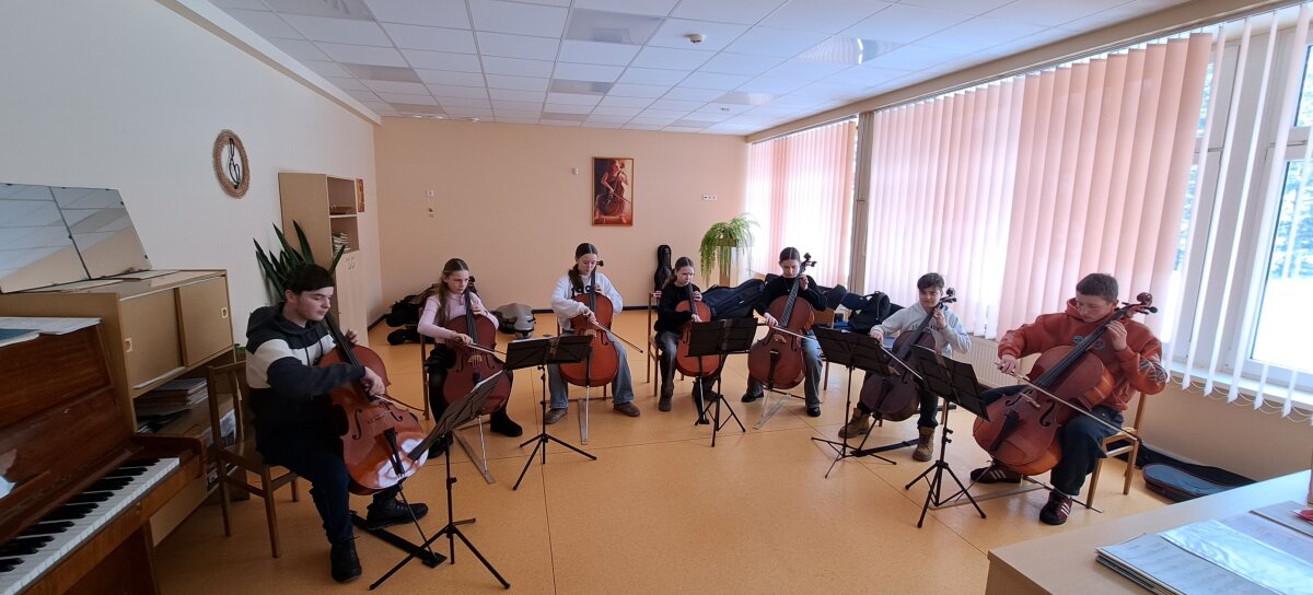 Gimnazijos violončelininkai Urtė, Ege Daniel ir Jokūbas sėkmingai ruošiasi XI respublikiniam violončelininkų festivaliui „Populiariname violončelės muziką“, kuris vyksta kas dvejus metus Kaune. Susijungėme su Kuršėnų meno mokyklos mokiniais ir mokomės groti šiam festivaliui sukurtus įdomius kūrinius. Juos vaikai gros violončelininkų orkestre. Abiejų mokyklų vaikai džiaugiasi draugyste, laukia susitikimo repeticijose. Esame dėkingi Šiaulių Sauliaus Sondeckio menų gimnazijos direktorei Reginai Marozienei už sudarytas sąlygas repetuoti Kuršėnų meno mokykloje.