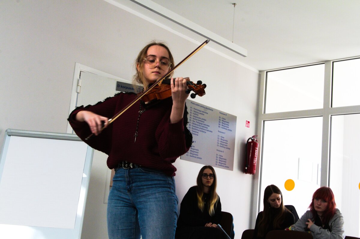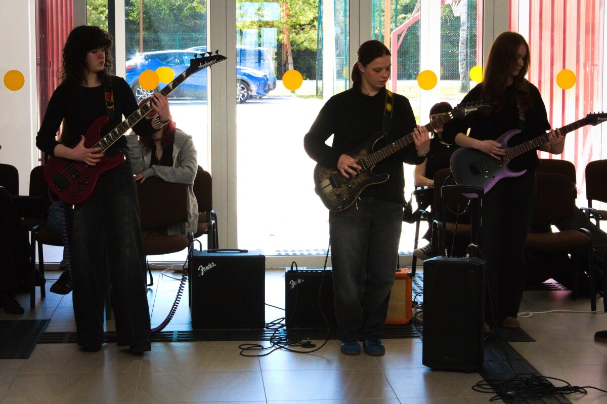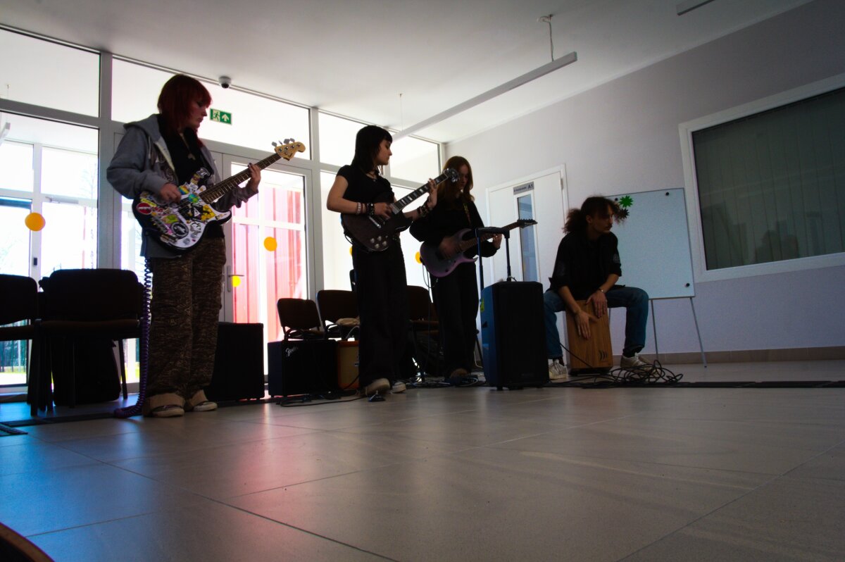 Atvykę į centrą, gimnazistai pirmiausia pristatė muzikinę programą. Mokiniai grojo įvairiais instrumentais, dainavo, stengdamiesi sukurti jaukią ir džiugią atmosferą. Jų pasirodymai nepaliko abejingų. Muzika tapo bendravimo tiltu, leidusiu bent trumpam visiems pasijusti artimesniems.