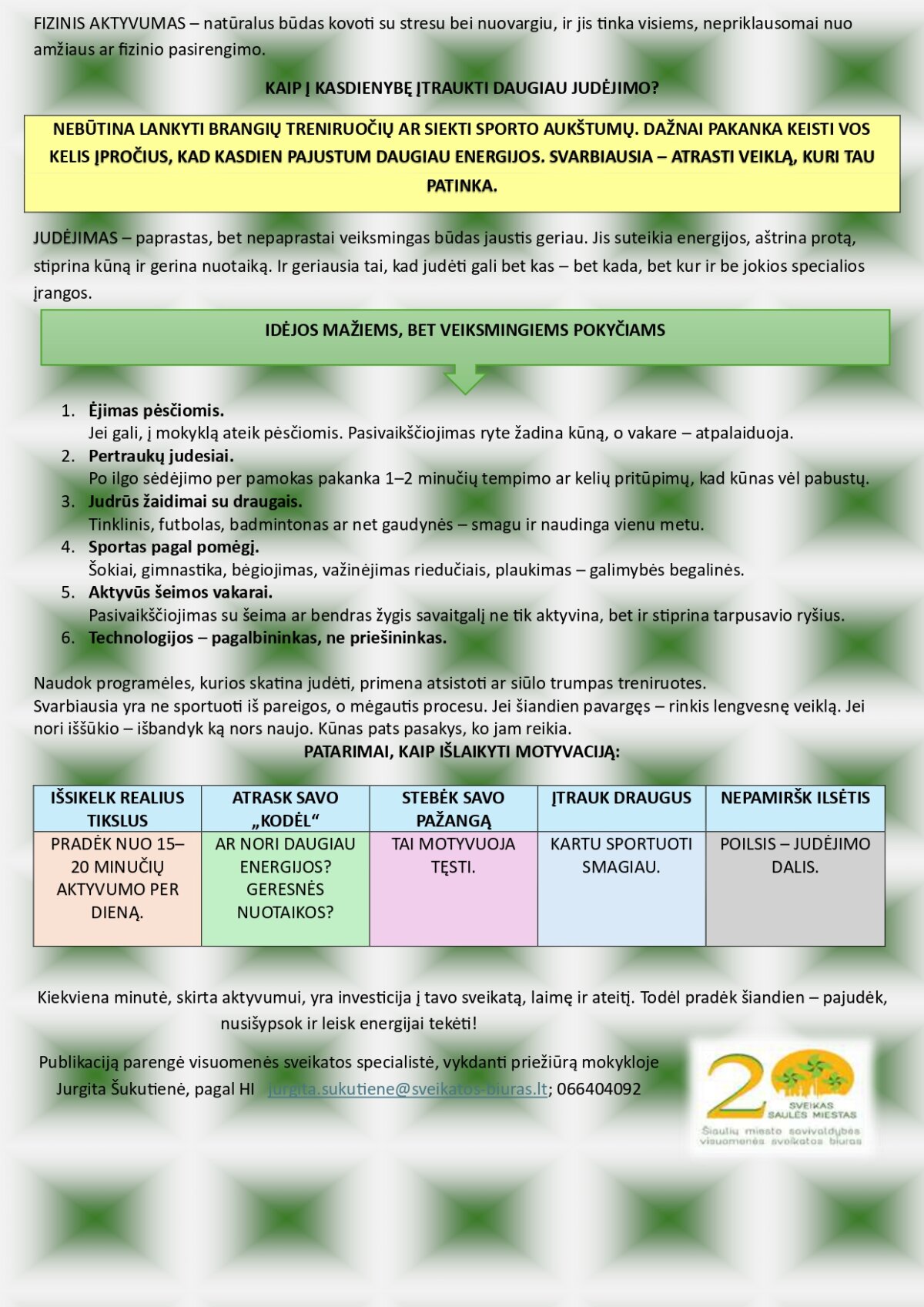 Judėjimas – energijos ir geros nuotaikos šaltinis