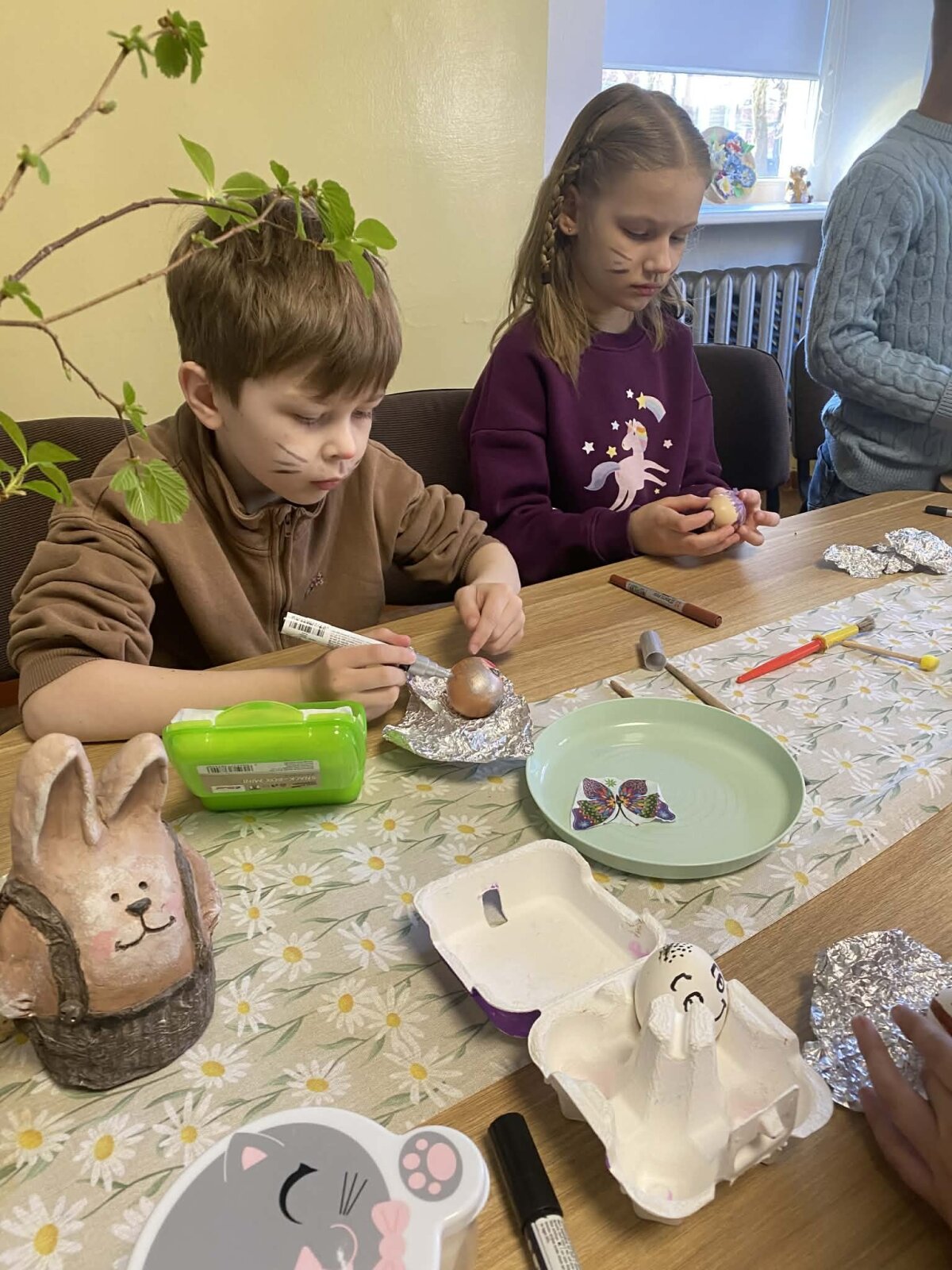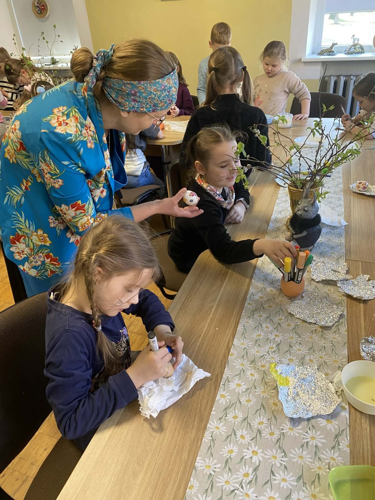 Atvykusius svečius pasitiko du linksmi zuikiai, kurie šiltai bendravo su vaikais, kvietė juos į įvairias veiklas ir užduotis. Netrukus atvyko ir Velykų bobutė – kartu su vaikais ji margino kiaušinius. Vaikai džiaugėsi galėdami patys išbandyti įvairias dekoravimo technikas.