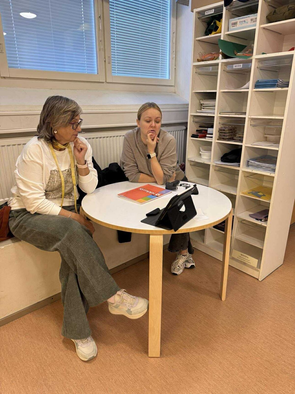 Mokytojos domėjosi tvarumo ir ekologijos integravimu į meninį ugdymą, naujais kūrybiškumo bei kritinio mąstymo metodais, meno stovyklų ir parodų organizavimu, skaitmeniniais įgūdžiais, taip pat gilinosi į suomių švietimo sistemos patirtis. Jas šiltai priėmė ir globojo dizaino ir vizualinių menų mokytoja, dailės skyriaus vadovė Laura Valo.