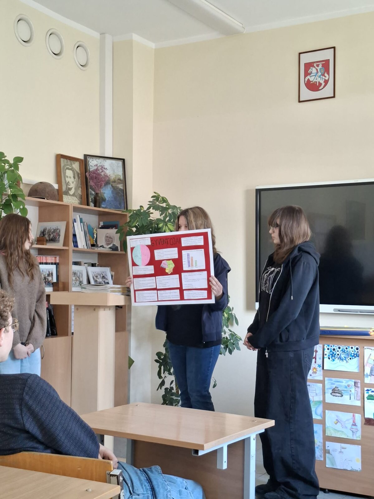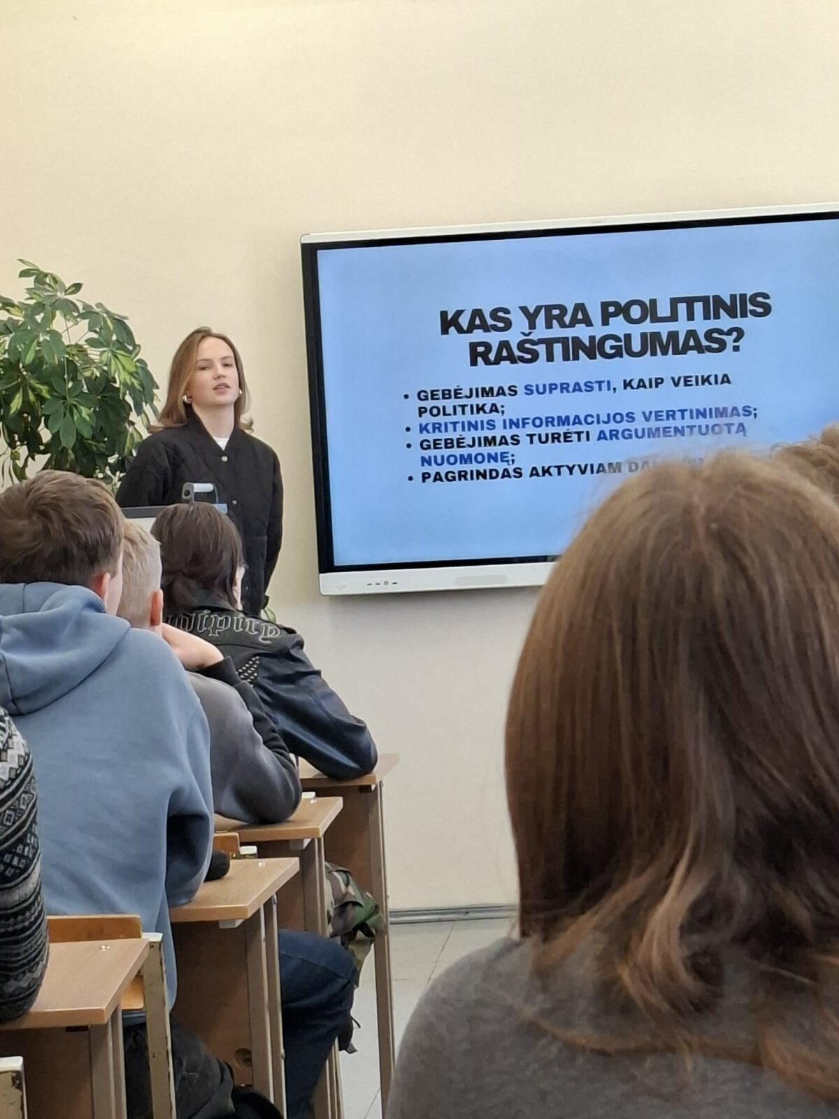 I gimnazijos klasėse vyko edukacija „Politinio raštingumo pamoka“, kurią vedė Lietuvos moksleivių sąjungos Šiaulių padalinio atstovės.