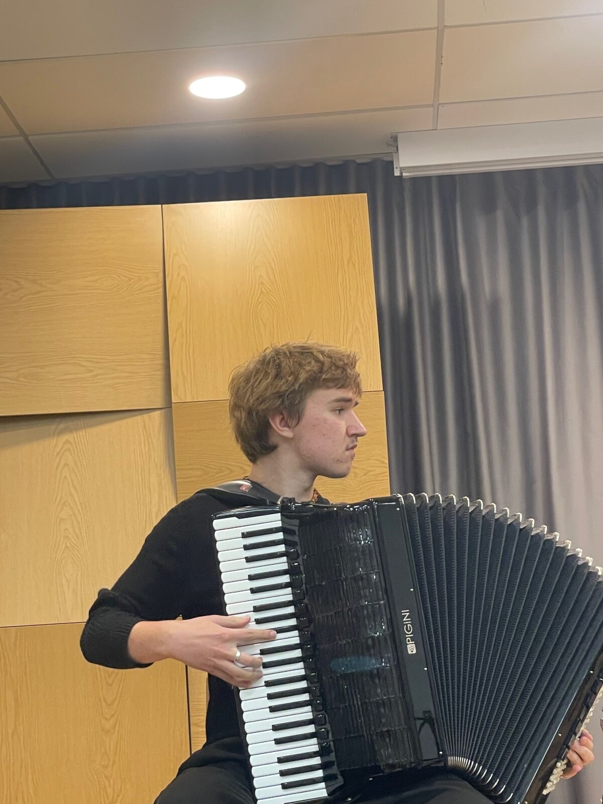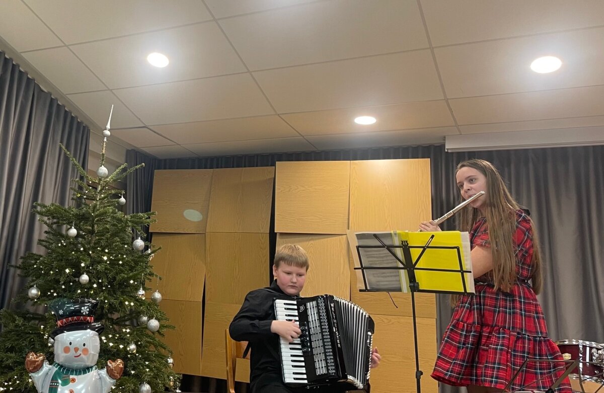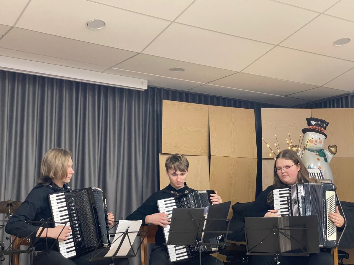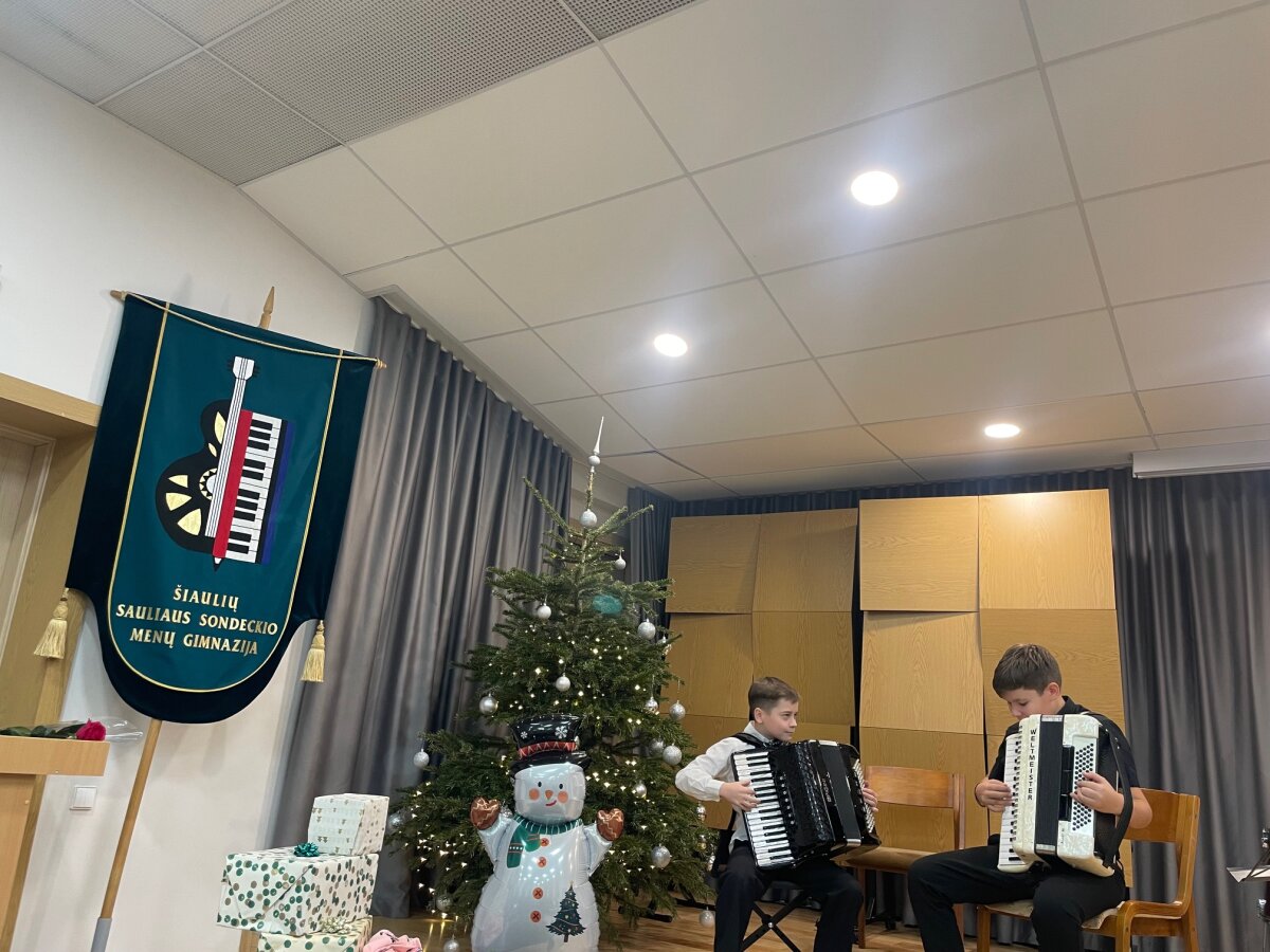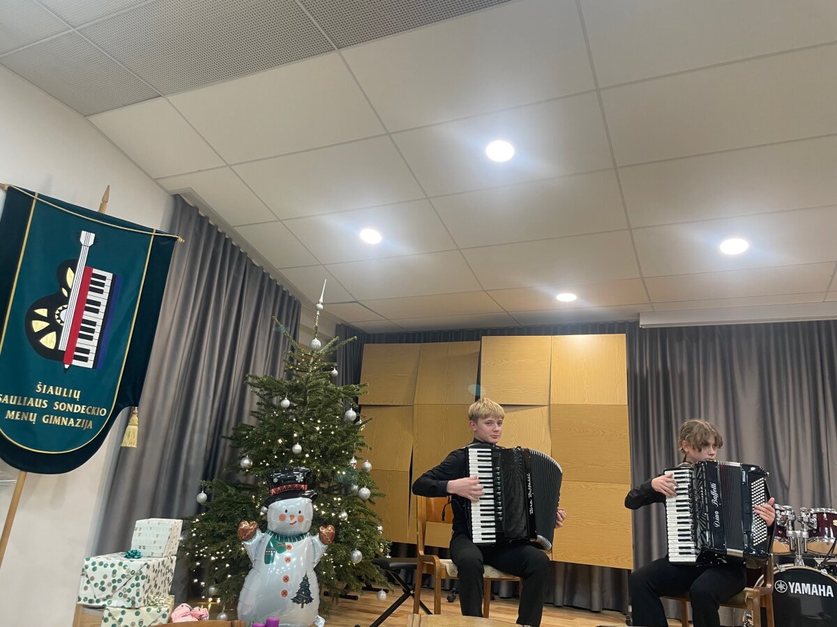 Mūsų gimnazijoje vaikai muzikuoja nuo 1-os iki 12-os klasės, todėl tradiciškai pirmoji į sceną žengė jauniausioji atlikėja – pirmokė Ana. Jos nedrąsūs pirmieji žingsneliai buvo šiltai sutikti klausytojų. Koncertą tęsė vyresnieji pradinukai. Gaila, kad dalis jų šiuo metu serga ir negali nudžiuginti savo artimųjų. Scenoje pasirodė ir visi 5–8 klasių moksleiviai, o pabaigoje – gimnazistai. Kad koncerto trukmė neprailgtų ir visi mokiniai pasirodytų scenoje, muzikavome įvairios sudėties ansambliuose. Džiugu, kad akordeonistai noriai renkasi ir kitus pasirenkamuosius dalykus. Maloniai klausytojus nudžiugino abiturientas Adrijus, atlikęs A. Raudonikio dainą „Meilės elegija“. Koncerto pabaigoje keletą kūrinių pagrojo akordeonistų orkestras. Šiuo metu mūsų nėra daug, tačiau visi vaikai mėgaujasi muzika ir yra laimingi joje.