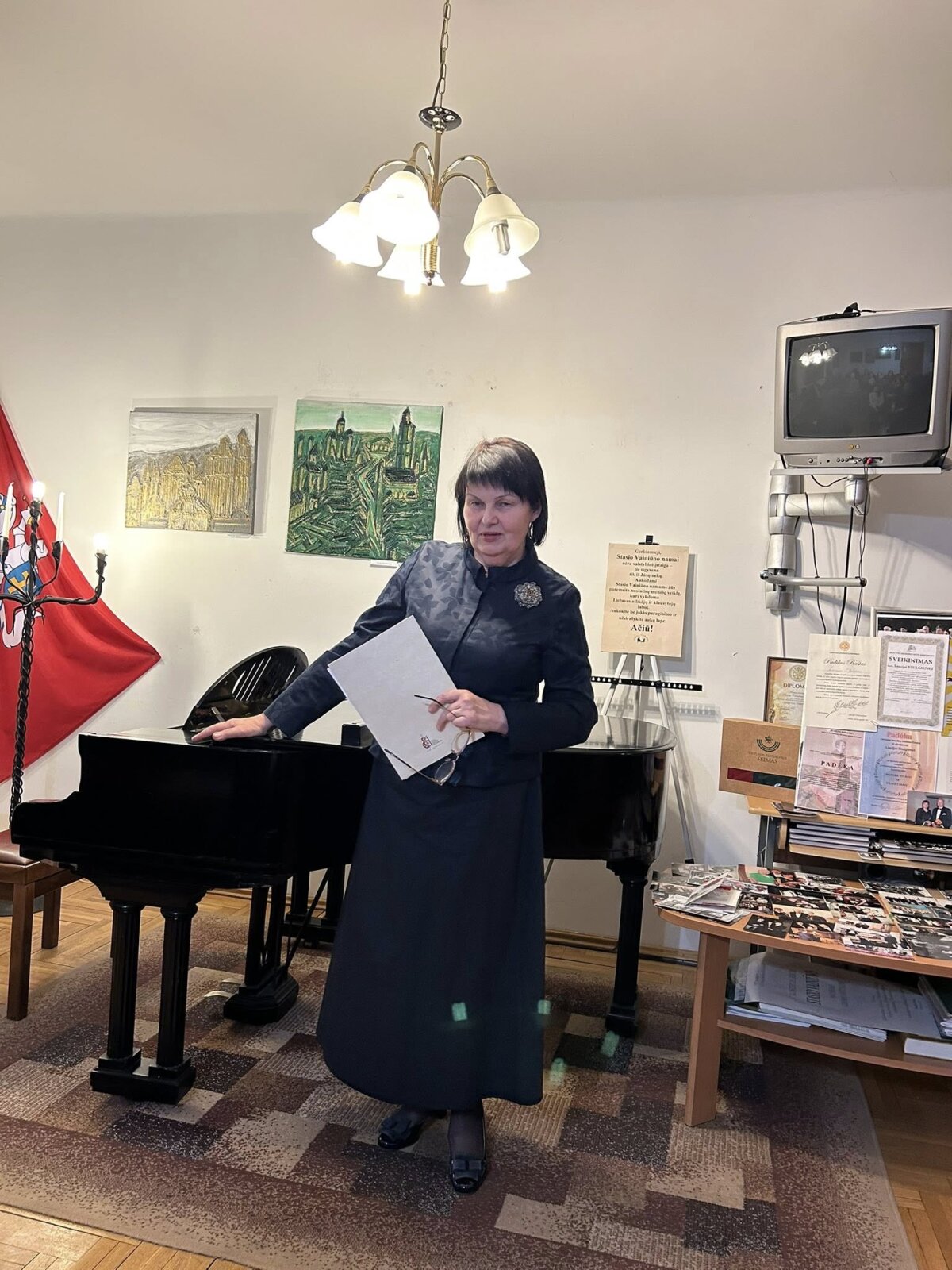 Renginio pabaigoje mokytoja N. Prascevičienė gimnazijos bendruomenės vardu pasveikino Lietuvos muzikų rėmimo fondo direktorę Liuciją Stulgienę garbingo 85-mečio proga, padėkojo už jos prasmingas veiklas bei išskirtinį dėmesį Šiaulių miesto jauniesiems menininkams.