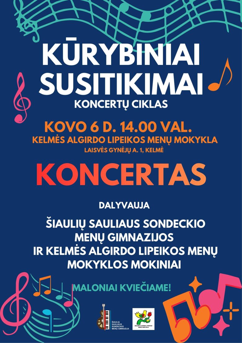 Kovo 6 d. 14.00 val. koncertų ciklas „Kūrybiniai susitikimai“ Kelmės Algirdo Lipeikos menų mokykloje